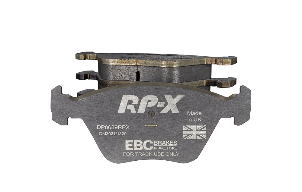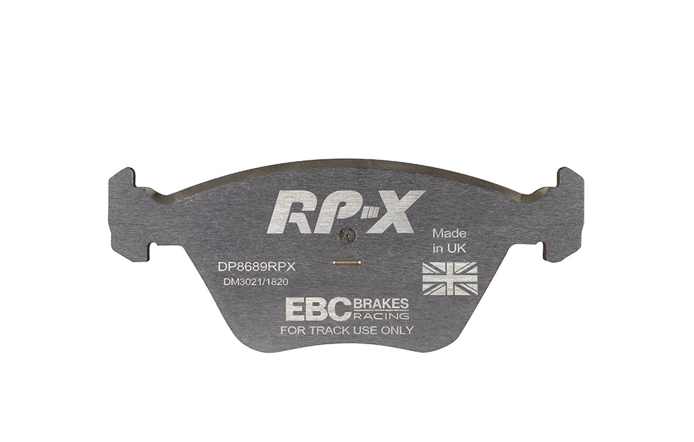 Klocki hamulcowe EBC RP-X, To wyczynowe klocki o bardzo wysokich osiągach, zaprojektowane z myślą o pojazdach sportowych, intensywnie jeżdżących po torze. RP-X posiadaj wyższy poziom tarcia 0,55 i są dedykowane do samochodów z hamulcami działającymi progresywnie, nie posiadających agresywnego wspomagania. Zastosowanie klocków RP-X zapewnia wyższą siłę hamowania i szybszą reakcję, pozwala to zachować optymalny skok pedału hamulca. Zarówno klocki RP-1 i RP-X  to klocki wyczynowe o wysokiej sprawności hamowania oraz odporności na wysokie temperatury. Różnią się współczynnikiem tarcia RP-1 0,45 Mu, RP-X 0,55 Mu  Wyboru należy dokonać na podstawie charakterystyki układu hamulcowego i osobistych preferencji.   -Wykonane z mieszanki materiałów węglowych Kevlar®. -Współczynnik tarcia 0,55. -Zakres temperatur powtarzalnego hamowania w zakresie 100 – 850°C -Maksymalna temperatura skutecznego hamowania 1000°C. -Dłuższa żywotność w warunkach wyścigowych. -Stabilne i powtarzalne hamowanie na każdym okrążeniu. -Osiągi wyścigowe w najwyższych temperaturach wyścigowych. -Rewolucyjny system mocowania podkładek z haczykiem Nucap NRS. -Nie posiadają homologacji drogowej ECE R90.   EBC Brakes produkuje największą gamę klocków hamulcowych i tarcz hamulcowych na świecie, oferuje ponad 5000 produktów do większości pojazdów. EBC Brakes posiada dwie specjalistyczne  fabryki w Wielkiej Brytanii i USA. Oferta obejmuje klocki hamulcowe do samochodów osobowych, ciężarowych, motocykli i rowerów, produkuje również specjalistyczne układy hamulcowe do farm wiatrowych, klocki hamulcowe do zastosowań wojskowych, takich jak Humvee i samochody opancerzone. Rodzaje produkowanych klocków hamulcowych obejmują klocki hamulcowe aramidowe, spiekowe, ceramiczne, o wydłużonej żywotności oraz tarcze hamulcowe EBC żeliwne, nierdzewne oraz pływające. Pasuje do: