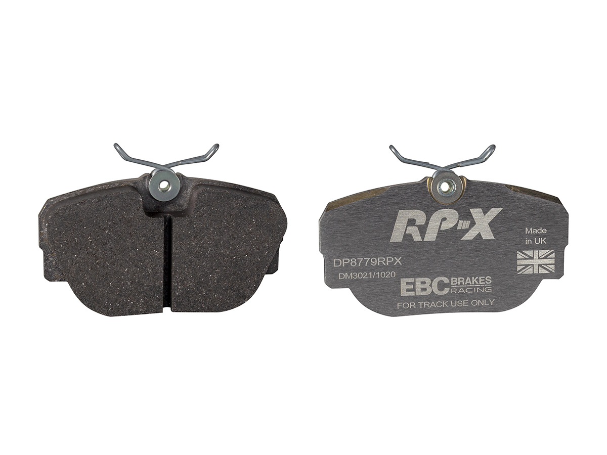 Klocki hamulcowe EBC RP-X, To wyczynowe klocki o bardzo wysokich osiągach, zaprojektowane z myślą o pojazdach sportowych, intensywnie jeżdżących po torze. RP-X posiadaj wyższy poziom tarcia 0,55 i są dedykowane do samochodów z hamulcami działającymi progresywnie, nie posiadających agresywnego wspomagania. Zastosowanie klocków RP-X zapewnia wyższą siłę hamowania i szybszą reakcję, pozwala to zachować optymalny skok pedału hamulca. Zarówno klocki RP-1 i RP-X  to klocki wyczynowe o wysokiej sprawności hamowania oraz odporności na wysokie temperatury. Różnią się współczynnikiem tarcia RP-1 0,45 Mu, RP-X 0,55 Mu  Wyboru należy dokonać na podstawie charakterystyki układu hamulcowego i osobistych preferencji.   -Wykonane z mieszanki materiałów węglowych Kevlar®. -Współczynnik tarcia 0,55. -Zakres temperatur powtarzalnego hamowania w zakresie 100 – 850°C -Maksymalna temperatura skutecznego hamowania 1000°C. -Dłuższa żywotność w warunkach wyścigowych. -Stabilne i powtarzalne hamowanie na każdym okrążeniu. -Osiągi wyścigowe w najwyższych temperaturach wyścigowych. -Rewolucyjny system mocowania podkładek z haczykiem Nucap NRS. -Nie posiadają homologacji drogowej ECE R90.   EBC Brakes produkuje największą gamę klocków hamulcowych i tarcz hamulcowych na świecie, oferuje ponad 5000 produktów do większości pojazdów. EBC Brakes posiada dwie specjalistyczne  fabryki w Wielkiej Brytanii i USA. Oferta obejmuje klocki hamulcowe do samochodów osobowych, ciężarowych, motocykli i rowerów, produkuje również specjalistyczne układy hamulcowe do farm wiatrowych, klocki hamulcowe do zastosowań wojskowych, takich jak Humvee i samochody opancerzone. Rodzaje produkowanych klocków hamulcowych obejmują klocki hamulcowe aramidowe, spiekowe, ceramiczne, o wydłużonej żywotności oraz tarcze hamulcowe EBC żeliwne, nierdzewne oraz pływające. Pasuje do:
