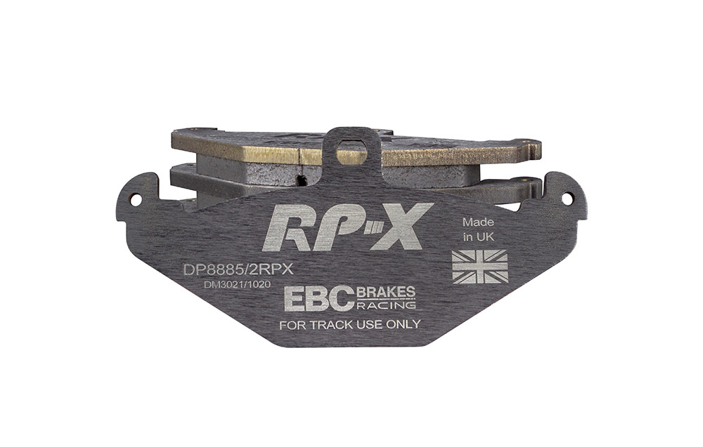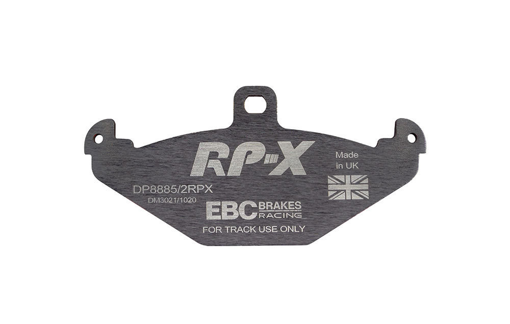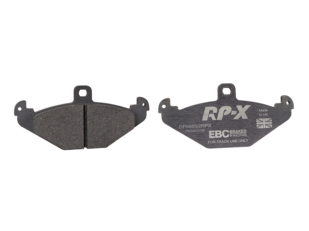 Klocki hamulcowe EBC RP-X, To wyczynowe klocki o bardzo wysokich osiągach, zaprojektowane z myślą o pojazdach sportowych, intensywnie jeżdżących po torze. RP-X posiadaj wyższy poziom tarcia 0,55 i są dedykowane do samochodów z hamulcami działającymi progresywnie, nie posiadających agresywnego wspomagania. Zastosowanie klocków RP-X zapewnia wyższą siłę hamowania i szybszą reakcję, pozwala to zachować optymalny skok pedału hamulca. Zarówno klocki RP-1 i RP-X  to klocki wyczynowe o wysokiej sprawności hamowania oraz odporności na wysokie temperatury. Różnią się współczynnikiem tarcia RP-1 0,45 Mu, RP-X 0,55 Mu  Wyboru należy dokonać na podstawie charakterystyki układu hamulcowego i osobistych preferencji.   -Wykonane z mieszanki materiałów węglowych Kevlar®. -Współczynnik tarcia 0,55. -Zakres temperatur powtarzalnego hamowania w zakresie 100 – 850°C -Maksymalna temperatura skutecznego hamowania 1000°C. -Dłuższa żywotność w warunkach wyścigowych. -Stabilne i powtarzalne hamowanie na każdym okrążeniu. -Osiągi wyścigowe w najwyższych temperaturach wyścigowych. -Rewolucyjny system mocowania podkładek z haczykiem Nucap NRS. -Nie posiadają homologacji drogowej ECE R90.   EBC Brakes produkuje największą gamę klocków hamulcowych i tarcz hamulcowych na świecie, oferuje ponad 5000 produktów do większości pojazdów. EBC Brakes posiada dwie specjalistyczne  fabryki w Wielkiej Brytanii i USA. Oferta obejmuje klocki hamulcowe do samochodów osobowych, ciężarowych, motocykli i rowerów, produkuje również specjalistyczne układy hamulcowe do farm wiatrowych, klocki hamulcowe do zastosowań wojskowych, takich jak Humvee i samochody opancerzone. Rodzaje produkowanych klocków hamulcowych obejmują klocki hamulcowe aramidowe, spiekowe, ceramiczne, o wydłużonej żywotności oraz tarcze hamulcowe EBC żeliwne, nierdzewne oraz pływające. Pasuje do: