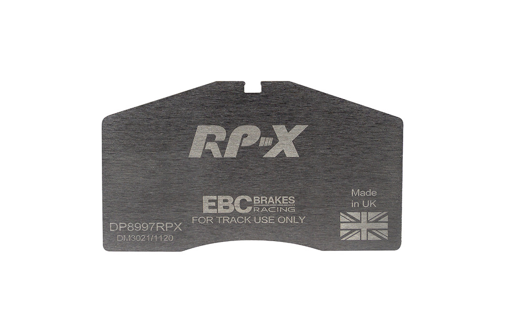 Klocki hamulcowe EBC RP-X, To wyczynowe klocki o bardzo wysokich osiągach, zaprojektowane z myślą o pojazdach sportowych, intensywnie jeżdżących po torze. RP-X posiadaj wyższy poziom tarcia 0,55 i są dedykowane do samochodów z hamulcami działającymi progresywnie, nie posiadających agresywnego wspomagania. Zastosowanie klocków RP-X zapewnia wyższą siłę hamowania i szybszą reakcję, pozwala to zachować optymalny skok pedału hamulca. Zarówno klocki RP-1 i RP-X  to klocki wyczynowe o wysokiej sprawności hamowania oraz odporności na wysokie temperatury. Różnią się współczynnikiem tarcia RP-1 0,45 Mu, RP-X 0,55 Mu  Wyboru należy dokonać na podstawie charakterystyki układu hamulcowego i osobistych preferencji.   -Wykonane z mieszanki materiałów węglowych Kevlar®. -Współczynnik tarcia 0,55. -Zakres temperatur powtarzalnego hamowania w zakresie 100 – 850°C -Maksymalna temperatura skutecznego hamowania 1000°C. -Dłuższa żywotność w warunkach wyścigowych. -Stabilne i powtarzalne hamowanie na każdym okrążeniu. -Osiągi wyścigowe w najwyższych temperaturach wyścigowych. -Rewolucyjny system mocowania podkładek z haczykiem Nucap NRS. -Nie posiadają homologacji drogowej ECE R90.   EBC Brakes produkuje największą gamę klocków hamulcowych i tarcz hamulcowych na świecie, oferuje ponad 5000 produktów do większości pojazdów. EBC Brakes posiada dwie specjalistyczne  fabryki w Wielkiej Brytanii i USA. Oferta obejmuje klocki hamulcowe do samochodów osobowych, ciężarowych, motocykli i rowerów, produkuje również specjalistyczne układy hamulcowe do farm wiatrowych, klocki hamulcowe do zastosowań wojskowych, takich jak Humvee i samochody opancerzone. Rodzaje produkowanych klocków hamulcowych obejmują klocki hamulcowe aramidowe, spiekowe, ceramiczne, o wydłużonej żywotności oraz tarcze hamulcowe EBC żeliwne, nierdzewne oraz pływające. Pasuje do: