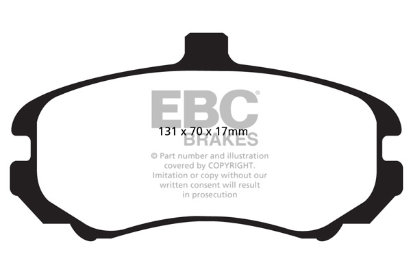 Klocki hamulcowe EBC Ultimax2 zamiennik klocków seryjnych w samochodach drogowych do użytku codziennego, o wysokim współczynnik tarcia. Mieszanka na bazie włókien aramidowych nie zawierająca włókien stalowych, o zminimalizowanym pyleniu, łatwym do usunięcia wodą. Dodatkową zaletą jest mniejsze zużycie tarcz hamulcowych i zminimalizowane ryzyko nierównomiernego zużycia oraz bicia tarcz. -Mieszanka na bazie włókien aramidowych. -Obniżone pylenie. -Wydłużona żywotność -Zakres skuteczności hamowania  do 400° C. -Wyprodukowane w Wielkiej Brytanii -Nie zawiera włókien stalowych. -Homologacja ECE R90. -Maksymalnie zminimalizowane zużycie tarcz hamulcowych. EBC Brakes produkuje największą gamę klocków hamulcowych i tarcz hamulcowych na świecie, oferuje ponad 5000 produktów do większości pojazdów. EBC Brakes posiada dwie specjalistyczne  fabryki w Wielkiej Brytanii i USA. Oferta obejmuje klocki hamulcowe do samochodów osobowych, ciężarowych, motocykli i rowerów, produkuje również specjalistyczne układy hamulcowe do farm wiatrowych, klocki hamulcowe do zastosowań wojskowych, takich jak Humvee i samochody opancerzone. Rodzaje produkowanych klocków hamulcowych obejmują klocki hamulcowe aramidowe, spiekowe, ceramiczne, o wydłużonej żywotności oraz tarcze hamulcowe EBC żeliwne, nierdzewne oraz pływające. Pasuje do: