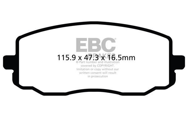 Klocki hamulcowe EBC Ultimax2 zamiennik klocków seryjnych w samochodach drogowych do użytku codziennego, o wysokim współczynnik tarcia. Mieszanka na bazie włókien aramidowych nie zawierająca włókien stalowych, o zminimalizowanym pyleniu, łatwym do usunięcia wodą. Dodatkową zaletą jest mniejsze zużycie tarcz hamulcowych i zminimalizowane ryzyko nierównomiernego zużycia oraz bicia tarcz. -Mieszanka na bazie włókien aramidowych. -Obniżone pylenie. -Wydłużona żywotność -Zakres skuteczności hamowania  do 400° C. -Wyprodukowane w Wielkiej Brytanii -Nie zawiera włókien stalowych. -Homologacja ECE R90. -Maksymalnie zminimalizowane zużycie tarcz hamulcowych. EBC Brakes produkuje największą gamę klocków hamulcowych i tarcz hamulcowych na świecie, oferuje ponad 5000 produktów do większości pojazdów. EBC Brakes posiada dwie specjalistyczne  fabryki w Wielkiej Brytanii i USA. Oferta obejmuje klocki hamulcowe do samochodów osobowych, ciężarowych, motocykli i rowerów, produkuje również specjalistyczne układy hamulcowe do farm wiatrowych, klocki hamulcowe do zastosowań wojskowych, takich jak Humvee i samochody opancerzone. Rodzaje produkowanych klocków hamulcowych obejmują klocki hamulcowe aramidowe, spiekowe, ceramiczne, o wydłużonej żywotności oraz tarcze hamulcowe EBC żeliwne, nierdzewne oraz pływające. Pasuje do: