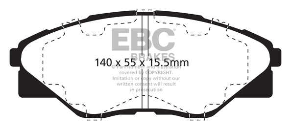 Klocki hamulcowe EBC Ultimax2 zamiennik klocków seryjnych w samochodach drogowych do użytku codziennego, o wysokim współczynnik tarcia. Mieszanka na bazie włókien aramidowych nie zawierająca włókien stalowych, o zminimalizowanym pyleniu, łatwym do usunięcia wodą. Dodatkową zaletą jest mniejsze zużycie tarcz hamulcowych i zminimalizowane ryzyko nierównomiernego zużycia oraz bicia tarcz. -Mieszanka na bazie włókien aramidowych. -Obniżone pylenie. -Wydłużona żywotność -Zakres skuteczności hamowania  do 400° C. -Wyprodukowane w Wielkiej Brytanii -Nie zawiera włókien stalowych. -Homologacja ECE R90. -Maksymalnie zminimalizowane zużycie tarcz hamulcowych. EBC Brakes produkuje największą gamę klocków hamulcowych i tarcz hamulcowych na świecie, oferuje ponad 5000 produktów do większości pojazdów. EBC Brakes posiada dwie specjalistyczne  fabryki w Wielkiej Brytanii i USA. Oferta obejmuje klocki hamulcowe do samochodów osobowych, ciężarowych, motocykli i rowerów, produkuje również specjalistyczne układy hamulcowe do farm wiatrowych, klocki hamulcowe do zastosowań wojskowych, takich jak Humvee i samochody opancerzone. Rodzaje produkowanych klocków hamulcowych obejmują klocki hamulcowe aramidowe, spiekowe, ceramiczne, o wydłużonej żywotności oraz tarcze hamulcowe EBC żeliwne, nierdzewne oraz pływające. Pasuje do: