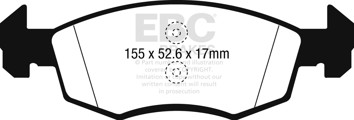 Klocki hamulcowe EBC Ultimax2 zamiennik klocków seryjnych w samochodach drogowych do użytku codziennego, o wysokim współczynnik tarcia. Mieszanka na bazie włókien aramidowych nie zawierająca włókien stalowych, o zminimalizowanym pyleniu, łatwym do usunięcia wodą. Dodatkową zaletą jest mniejsze zużycie tarcz hamulcowych i zminimalizowane ryzyko nierównomiernego zużycia oraz bicia tarcz. -Mieszanka na bazie włókien aramidowych. -Obniżone pylenie. -Wydłużona żywotność -Zakres skuteczności hamowania  do 400° C. -Wyprodukowane w Wielkiej Brytanii -Nie zawiera włókien stalowych. -Homologacja ECE R90. -Maksymalnie zminimalizowane zużycie tarcz hamulcowych. EBC Brakes produkuje największą gamę klocków hamulcowych i tarcz hamulcowych na świecie, oferuje ponad 5000 produktów do większości pojazdów. EBC Brakes posiada dwie specjalistyczne  fabryki w Wielkiej Brytanii i USA. Oferta obejmuje klocki hamulcowe do samochodów osobowych, ciężarowych, motocykli i rowerów, produkuje również specjalistyczne układy hamulcowe do farm wiatrowych, klocki hamulcowe do zastosowań wojskowych, takich jak Humvee i samochody opancerzone. Rodzaje produkowanych klocków hamulcowych obejmują klocki hamulcowe aramidowe, spiekowe, ceramiczne, o wydłużonej żywotności oraz tarcze hamulcowe EBC żeliwne, nierdzewne oraz pływające. Pasuje do: