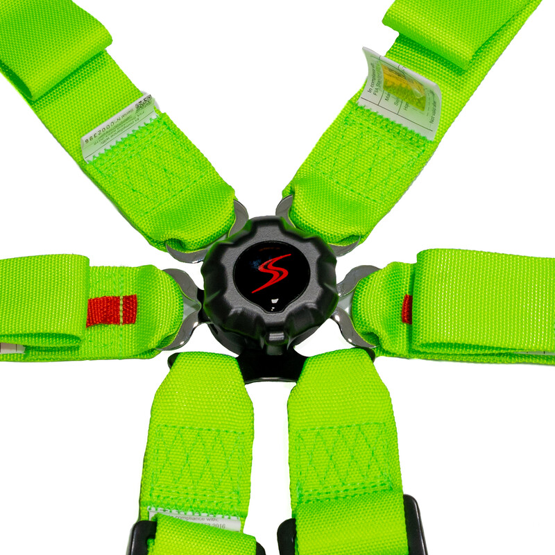 DriftShop 6-Point FIA Harness Specifications New feature! The side straps are equipped with our new quick-release system : two elastics ensure immediate release of both left and right straps when you unclip the central buckle of the harness. This system makes entering and exiting the vehicle much quicker and easier for the driver (and the passenger), and avoids sitting on the harness when getting into bucket seats. Our 6-point harnesses are FIA 8853-2016 (SH.059.19-T-6) certified, and compatible with Hans system which is now obligatory in numerous motorsport categories. They are equipped with an aviation quality buckle, which is both light and user-friendly, offering generous adjustment for all body sizes. They also include velcro patches to hold accessories (drink tube, radio, etc.). Made under strict quality controls, they are 5 years FIA approved and will suit even the most the demanding drivers that need to equip themselves with FIA certified items without compromising on quality. The eyebolts are included, to ensure a quick and secure installation in place of the OEM seatbelts. FIA Harness: 6-point harness with DriftShop logos Quick release system FIA 8853-2016 (SH.059.19-T-6) certified Colour: fluo green 2" straps (51 mm) Hans compatible Aviation quality buckles and adjusters Easily adjustable Eye bolts included Weight: 2.6 kg 2025 batch, FIA certified until and including 2030