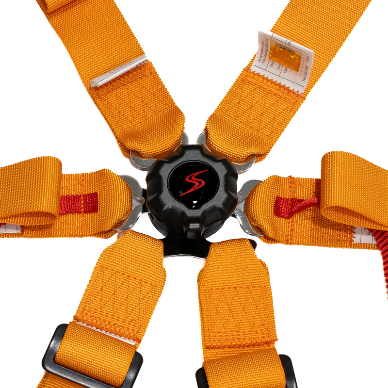 DriftShop 6-Point FIA Harness Specifications New feature! The side straps are equipped with our new quick-release system : two elastics ensure immediate release of both left and right straps when you unclip the central buckle of the harness. This system makes entering and exiting the vehicle much quicker and easier for the driver (and the passenger), and avoids sitting on the harness when getting into bucket seats. Our 6-point harnesses are FIA 8853-2016 (SH.059.19-T-6) certified, and compatible with Hans system which is now obligatory in numerous motorsport categories. They are equipped with an aviation quality buckle, which is both light and user-friendly, offering generous adjustment for all body sizes. They also include velcro patches to hold accessories (drink tube, radio, etc.). Made under strict quality controls, they are 5 years FIA approved and will suit even the most the demanding drivers that need to equip themselves with FIA certified items without compromising on quality. The eyebolts are included, to ensure a quick and secure installation in place of the OEM seatbelts. FIA Harness: 6-point harness with DriftShop logos Quick release system FIA 8853-2016 (SH.059.19-T-6) certified Colour: orange 2" straps (51 mm) Hans compatible Aviation quality buckles and adjusters Easily adjustable Eye bolts included Weight: 2.6 kg 2025 batch, FIA certified until and including 2030