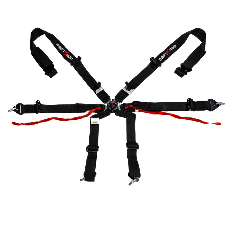 DriftShop ExtraBalls 6-Point FIA Harness Specifications New feature! Specially designed for drivers with large packs, these ExtraBalls harnesses combine a high level of safety with superior crotch comfort. Standard 6-point harnesses are likely to create discomfort and compression in the private parts because of the points of passage and the tightening of the straps. With ExtraBalls harnesses, the two lower straps carefully bypass the critical crotch area to ensure greater comfort for the driver. The side straps are equipped with our new quick-release system : two elastics ensure immediate release of both left and right straps when you unclip the central buckle of the harness. This system makes entering and exiting the vehicle much quicker and easier for the driver (and the passenger), and avoids sitting on the harness when getting into bucket seats. Our 6-point harnesses are FIA 8853-2016 (SH.059.19-T-6) certified, and compatible with Hans system which is now obligatory in numerous motorsport categories. They are equipped with an aviation quality buckle, which is both light and user-friendly, offering generous adjustment for all body sizes. They also include velcro patches to hold accessories (drink tube, radio, etc.). Made under strict quality controls, they are 5 years FIA approved and will suit even the most the demanding drivers that need to equip themselves with FIA certified items without compromising on quality. The eyebolts are included, to ensure a quick and secure installation in place of the OEM seatbelts. FIA Harness: Redesigned crotch area for greater comfort 6-point harness with DriftShop logos Quick release system FIA 8853-2016 (SH.059.19-T-6) certified Colour: black 2" straps (51 mm) Hans compatible Aviation quality buckles and adjusters Eye bolts included Weight: 2.6 kg 2025 batch, FIA certified until and including 2030