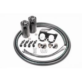 ABOUT RADIUM ENGINEERING CATCH CANSRadium Engineering catch cans feature large 10AN ORB ports, a 4AN ORB drain port, 2-step oil separation baffling, and an O-ring sealed dipstick. These kits mount using factory holes and integrate perfectly with the surrounding components. They do NOT vent to atmosphere (VTA), thus are emissions and track legal. Closed loop systems remove the oil and sludge from the PCV gasses before it is routed to the engine to be burned. A closed loop system also promotes negative crankcase pressure for optimal performance. Furthermore, closed systems prevent unwanted oil vapors from entering the cabin. The dipsticks built into the catch cans allow easy inspection of accumulated fluid. No cutting, drilling or permanent modifications are required. OVERVIEW Radium Engineering offers two different catch can kits for the R35:*The 20-0565 PCV line kit mounts near the brake master cylinder in the back of the engine bay and interfaces with the hose that goes from the PCV valve on the engine to the intake manifold (vacuum). NOTE: The PCV kit is NOT directly compatible with 08-11 GT-Rs which did not have an OEM strut bar.*The 20-0555 crankcase vent kit mounts on the front of the engine and interfaces with the breather lines coming off of the heads and going to the turbo intake piping. This kit contains two catch cans (one for each head breather).These two kits can be purchased separately or together. When deciding which kit (or kits) to purchase, it is important to remember that both kits working together offer the most protection from oil ingestion into the engine. The PCV side kit is effective at keeping oil out of the intake manifold when the PCV valve is open, such as during light cruising, idle, etc. When in boost, the PCV valve closes and all the engine blow-by comes out of the head breathers. This is a good reason to have catch cans on the crankcase breathers. 20-0555 DUAL CATCH CAN KIT, CCV, NISSAN R35 GT-RTo retain factory functionality, the two CCV catch cans run inline between each crankcase vent (CCV) port and the corresponding turbo inlets. At low loads, these catch cans experience atmospheric pressure. However, when the engine is at high load (WOT), these vents will experience high flow out of the crankcase. This would normally lead to oil and sludge accumulation in the air filter intake pipe. Oil accumulation will occur in the intercooler which lowers the thermal efficiency properties of the heat exchanger and leads to decreased performance. NOTES: 1. The dual CCV catch can kit does NOT address blow-by from the PCV valve side of the crankcase.2. The dual CCV catch can kit is compatible and recommended to be used with the PCV catch can kit. Instruction PDF