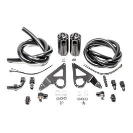 COMPATIBILITY2022+ Toyota GR862022+ Subaru BRZ OVERVIEWAn oil catch can is essential to protect the engine from elevated levels of crankcase blow-by accumulated from aggressive driving. Excess oil-saturated air circulating back into the air intake stream can lead to degraded performance. Radium Engineering catch cans feature large 10AN ORB ports, a 4AN ORB drain port, 2-step oil separation baffling, and an O-ring sealed dipstick. FEATURES-Less oil consumption effectively raises octane-Cleaner air increases engine performance -Prevents sludge buildup in the intake-Lowers hydrocarbon emissions -Capacity: 7 fluid ounces -Height (without fittings): 5 inches-Outside Diameter: 2.45 inches PLATFORM SPECIFICSThe catch cans are strategically located for compatibility with Right Hand Drive (RHD) and Left Hand Drive (LHD) variations. Minor brake line clearancing is necessary on RHD installations. For mounting, the kits use factory bosses and holes on the chassis. No cutting, drilling or permanent modification to the vehicle are required. The two oil catch can kits are completely independent of each other and are sold individually or together. They do NOT vent to atmosphere (VTA), thus are emissions and track legal. Closed loop systems route clean filtered air back in through the engine to be burned and to promote negative crankcase pressure for optimal performance. Furthermore, closed systems prevent unwanted oil vapors into the cabin. 20-0911-FL CATCH CAN KIT, PCV, 2022+ BRZ/GR86, FLUID LOCKThe 20-0911-FL PCV kit mounts on the RH side of the engine bay. This catch can runs inline with the 5/8" PCV (positive crankcase ventilation) valve. When the intake manifold pressure is close to or greater than atmospheric pressure, the PCV "check" valve closes and, thus, this hose experiences no flow. Conversely, the PCV hose will experience "metered" vacuum when the engine is idling, steady state cruising, and decelerating. This would normally draw unwanted crankcase vapor, unspent fuel, and oil sludge into the intake manifold immediately after a high load run. 20-0913-FL DUAL CATCH CAN KIT, 2022+ BRZ/GR86, FLUID LOCKFor the ultimate in engine protection, Radium Engineering recommends the 20-0913-FL Dual Catch Can Kit. This kit utilizes both the CCV and PCV catch can kits. Instruction PDF