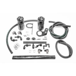 Radium Engineering catch cans feature large 10AN ORB ports, a 4AN ORB drain port, 2-step oil separation baffling, and an O-ring sealed dipstick. This kit mount using factory holes and integrate perfectly with the surrounding components. These two oil catch cans (PCV side and CCV side) function completely independent of each other and are sold individually or together. They do NOT vent to atmosphere (VTA), thus are emissions and track legal. Closed loop systems remove the oil and sludge from the PCV gasses before it is routed to the engine to be burned. A closed loop system also promotes negative crankcase pressure for optimal performance. Furthermore, closed systems prevent unwanted oil vapors from entering the cabin. The dipsticks built into the catch cans allow easy inspection of accumulated fluid. No cutting, drilling or permanent modification to the vehicle is required. 20-0825-FL Catch Can Kit, CCV, 2017+ Civic Type-RCOMPATIBILITY17-21 Honda Civic Type-R FK82023+ Honda Civic Type-R FL5The catch can fits under the OEM engine cover with no modifications required. It secures to the RH motor mount. If an aftermarket motor mount is used, minor modifications may be required. This catch can runs inline with the crankcase vent port. At low loads it experiences atmospheric pressure, but when the engine is at high load (WOT), this line will experience high flow out of the crankcase. This would normally lead to oil and sludge accumulation in the air filter intake pipe. Oil accumulation will occur in the intercooler which lowers the thermal efficiency properties of the heat exchanger and leads to decreased performance. The crankcase vent lines are routed over the engine and billet clamped to the turbo inlet pipe using temperature resistant metal tubes. 20-0826-FL Dual Catch Can Kit, 2017+ Civic Type-RCOMPATIBILITY17-21 Honda Civic Type-R FK82023+ Honda Civic Type-R FL5For the ultimate in engine protection, Radium recommends 20-0826-FL Dual Catch Can Kit, 2017+ Civic Type-R. This kit utilizes both the "CCV" and "PCV" catch can kits detailed above. It is designed for LHD vehicles. Each kit features the following: -Anodized oil catch can with integrated condenser and dipstick-Anodized aluminum Civic Type-R specific mounting bracket-Anodized aluminum -AN adapter fittings and hose ends-Enough PCV hose for custom applications -Stainless steel mounting hardware Instruction PDF