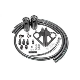 COMPATIBILITY12-21 Toyota 8612-20 Subaru BRZ12-16 Scion FR-S OVERVIEWAn oil catch can is essential to protect the engine from elevated levels of crankcase blow-by accumulated from aggressive driving. Excess oil-saturated air circulating back into the air intake stream can lead to degraded performance. Radium Engineering catch cans feature large 10AN ORB ports, a 4AN ORB drain port, 2-step oil separation baffling, and an O-ring sealed dipstick. FEATURES-Less oil consumption effectively raises octane-Cleaner air increases engine performance -Prevents sludge buildup in the intake-Lowers hydrocarbon emissions -Capacity: 7 fluid ounces -Height (without fittings): 5 inches-Outside Diameter: 2.45 inches PLATFORM SPECIFICSThe catch cans are strategically located for compatibility with Right Hand Drive (RHD) and Left Hand Drive (LHD) variations. Minor brake line clearancing is necessary on RHD installations. For mounting, the kits use factory bosses and holes on the chassis. No cutting, drilling or permanent modification to the vehicle are required. The two oil catch can kits are completely independent of each other and are sold individually or together. They do NOT vent to atmosphere (VTA), thus are emissions and track legal. Closed loop systems route clean filtered air back in through the engine to be burned and to promote negative crankcase pressure for optimal performance. Furthermore, closed systems prevent unwanted oil vapors into the cabin. 20-0901-FL CATCH CAN KIT, PCV, FR-S/BRZ/GT86, FLUID LOCKThe 20-0901-FL PCV kit mounts on the RH side of the engine bay. This catch can runs inline with the 3/8" PCV (positive crankcase ventilation) valve. When the intake manifold pressure is close to or greater than atmospheric pressure, the PCV "check" valve closes and, thus, this hose experiences no flow. Conversely, the PCV hose will experience "metered" vacuum when the engine is idling, steady state cruising, and decelerating. This would normally draw unwanted crankcase vapor, unspent fuel, and oil sludge into the intake manifold immediately after a high load run. 20-0902-FL CATCH CAN KIT, CCV, FR-S/BRZ/GT86/GR86, FLUID LOCKThe 20-0902-FL CCV kit mounts on the LH side of the engine bay. This catch can runs inline with the 1/2" breather port. At low loads it experiences atmospheric pressure, but when the engine is at high load (WOT), this hose will experience vacuum and would normally be drawing unwanted crankcase vapors, unspent fuel, and oil sludge into the air filter intake pipe. If the engine is turbocharged or supercharged and you are finding oil accumulation stuck in the intercooler, this catch can is a necessity as oil will lower the thermal efficiency properties of the heat exchange process. 20-0903-FL DUAL CATCH CAN KIT, FR-S/BRZ/GT86, FLUID LOCKFor the ultimate in engine protection, Radium Engineering recommends the 20-0903-FL Dual Catch Can Kit. This kit utilizes both the CCV and PCV catch can kits. Instruction PDF