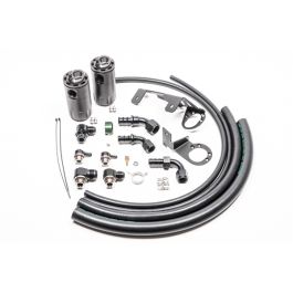 COMPATIBILITY 2020+ Toyota MK5 GR Supra-Turbocharged 3.0L (B58) ONLY Radium Engineering catch cans feature large 10AN ORB ports, a 4AN ORB drain port, 2-step oil separation baffling, and an O-ring sealed dipstick. These kits mount using factory holes and integrate perfectly with the surrounding components. They do NOT vent to atmosphere (VTA), thus are emissions and track legal. Closed loop systems remove the oil and sludge from the PCV gasses before it is routed to the engine to be burned. A closed loop system also promotes negative crankcase pressure for optimal performance. Furthermore, closed systems prevent unwanted oil vapors from entering the cabin. The dipsticks built into the catch cans allow easy inspection of accumulated fluid. No cutting, drilling or permanent modifications are required. 20-0749-FL CATCH CAN KIT, PCV, MK5 SUPRAThe PCV catch can kit runs inline between the ventilation valve and the intake pipe. It mounts to threaded bosses on the front radiator support. This location stays clear of aftermarket parts such as an upgraded turbocharger or intake tubing. The PCV catch can traps unwanted "metered" crankcase vapor, unspent fuel, and oil sludge. It promotes clean filtered air back into the turbocharger inlet. INCLUDES-Baffled oil catch can-MK5 GR Supra specific mounting bracket-AN adapter fittings and hose ends-Stainless steel hardware-Radium PCV hose 20-0750-FL CATCH CAN KIT, CCV, MK5 SUPRAThe CCV catch can mounts to 2 holes on the front radiator support. It was designed specifically to clear strut braces. Furthermore, this location stays clear of aftermarket parts such as an upgraded turbocharger or intake tubing. To retain factory functionality, the CCV catch can runs inline between the crankcase vent (CCV) port and the intake pipe. At low loads, it experiences atmospheric pressure. However, when the engine is at high load (WOT), the line will experience high flow from the crankcase into the intake system. This would normally lead to oil and sludge accumulation in the air filter intake pipe. This oil accumulation would spread and be found in the intercooler which lowers the thermal efficiency properties of the heat exchanger and leads to decreased performance. The CCV catch can captures this and promotes clean filtered air back into the intake. INCLUDES-Baffled oil catch can-MK5 GR Supra specific mounting bracket-AN adapter fittings and hose ends-Stainless steel hardware-Radium PCV hose 20-0751-FL DUAL CATCH CAN KIT, MK5 SUPRAFor the ultimate in engine protection, Radium recommends 20-0751 Dual Catch Can Kit, MK5 Supra. This kit utilizes both the "PCV" and "CCV" catch can kits detailed above. Instruction PDF