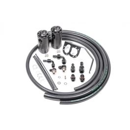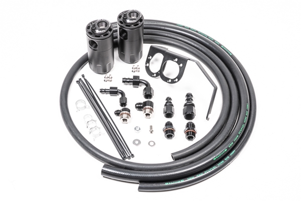 COMPATIBILITY*15-21 Subaru WRXNot compatible with the Subaru STiHas not been tested on right hand drive modelsMay not be compatible with some aftermarket intake systems.*Not compatible with the 2018+ Sport Lineartronic (CVT) Transmission An oil catch can is essential on a performance vehicle to protect the engine from elevated levels of crankcase blow-by accumulated from high performance driving. Excess oil saturated air circulating back into the air intake stream can lead to degraded performance. Radium Engineering catch cans feature large 10AN ORB ports, a 4AN ORB drain port, 2-step oil separation baffling, and an O-ring sealed dipstick. Features:-Effectively raises the octane and increased engine performance from cleaner inlet air -Prevents oil buildup in the intake and intercooler system walls, throttle body, intake manifold, etc. -Excessive oil collection can be an indicator of a damaged engine.-Lowers hydrocarbon emissions -Capacity: 7 fluid ounces each This kit is perfect for stock or modified street cars as a preventative measure to keep oil and sludge out of the intake tract, intercooler, and intake manifold. The direct-injected Subaru FA20F engine in particular has an inherent problem since there are no port injectors to clean the backside of the intake valves.The forward catch can intercepts the CCV line and the rear catch can intercepts the PCV line. The system is completely sealed and retains factory function of the PCV valve. The catch cans are sealed and will withstand pressure in boosted applications. Instruction PDF