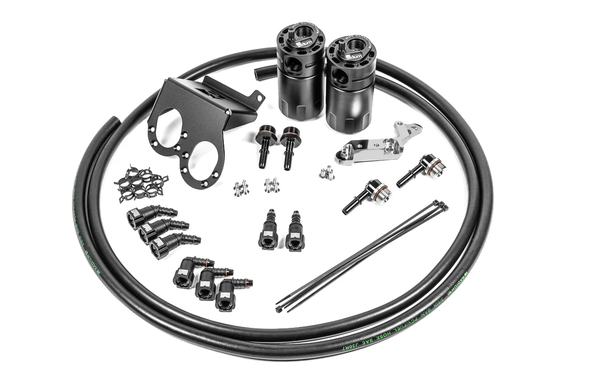 Zastosowanie Chevrolet Corvette C7 LT1 Dry Sump (2017–2019) 20-1286-FL Dual Catch Can Kit – Corvette LT1 Dry Sump (Fluid Lock) Zbiornik typu catch can odprowadza olej oraz kondensat wody z gazów skrzyni korbowej, które w innym przypadku trafiałyby do kolektora dolotowego. Zapobiega to odkładaniu się oleju w układzie dolotowym, na ściankach intercoolera, w przepustnicy oraz kolektorze dolotowym. Skutkiem jest czystsze powietrze dolotowe, co może poprawić osiągi silnika, efektywnie podnieść liczbę oktanową oraz obniżyć emisję węglowodorów. Zamknięty układ zapobiega przedostawaniu się oparów oleju do kabiny pojazdu. Zestaw zawiera wszystkie elementy niezbędne do kompletnego montażu. Catch Cans Fluid Lock® W 2022 roku Radium Engineering wprowadziło przełomową zmianę konstrukcyjną standardowego zbiornika catch can o pojemności 7 uncji płynu. Tradycyjne zbiorniki catch can, przy braku regularnego serwisowania, mogą dopuścić do przepełnienia i przedostania się zanieczyszczeń do układu dolotowego, powodując spadek osiągów silnika. Rozwiązaniem jest Fluid Lock® Catch Can – opatentowany mechanizm, który zapobiega przepełnieniu zbiornika i zatrzymuje zebrane płyny do momentu jego opróżnienia. Gromadzenie i opróżnianie Tempo gromadzenia oleju i wilgoci zależy od konkretnego pojazdu, dlatego nie istnieje stały interwał opróżniania. Zbiorniki PCV zwykle zbierają więcej zanieczyszczeń niż CCV. Zaleca się kontrolę poziomu za pomocą zintegrowanego bagnetu po 3–4 tygodniach eksploatacji i dalsze kontrole w zależności od obserwacji. Opróżnianie odbywa się poprzez odkręcenie dolnego zbiornika lub – jeśli dostępna jest przestrzeń – poprzez zastosowanie zestawu spustowego Petcock Drain Kit. Nadmierne gromadzenie oleju może wskazywać na problemy z silnikiem, takie jak: nadmierne przedmuchy spalin (blow-by) spowodowane zużyciem silnika, zbyt wysoki poziom oleju powodujący zawirowania w skrzyni korbowej, niewłaściwe umiejscowienie lub słabe przegrody w odpowietrzeniach, nieszczelny zawór PCV pod dużym obciążeniem. Zestaw Dual Catch Can Zestaw zawiera dwa zbiorniki catch can – PCV oraz CCV, zapewniając maksymalną ochronę silnika. Specyfikacja techniczna Bezpośredni montaż, bez konieczności wiercenia Duże porty wlotowe i wylotowe 10AN ORB Port spustowy 4AN ORB Dwustopniowe przegrody separujące olej Bagnet uszczelniony O-ringiem Pojemność: 7 fl oz Opatentowany system Fluid Lock® Zawartość zestawu Zbiorniki catch can z przegrodami, zintegrowanym kondensatorem i bagnetem Anodowane aluminiowe uchwyty montażowe Polerowana płyta masowa z aluminium billet Złączki typu SAE quick connect Elementy montażowe ze stali nierdzewnej Gumowy przewód PCV 3/8″ Sprężynowe opaski zaciskowe