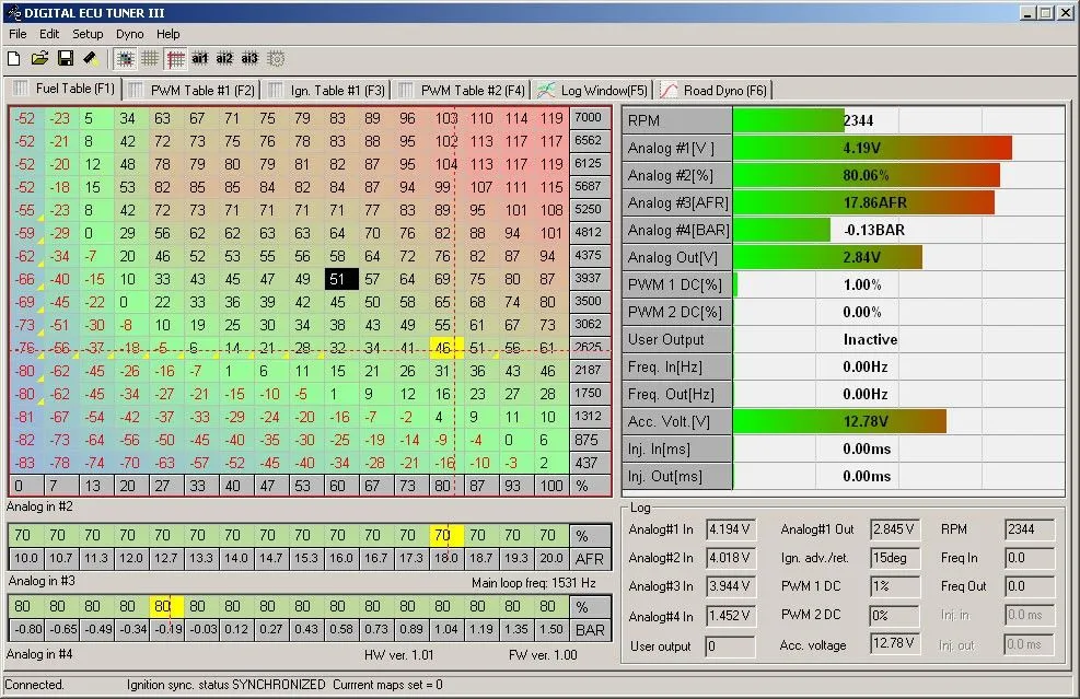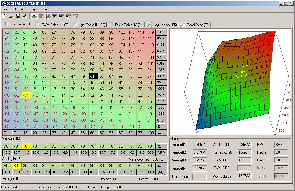 Digital ECU Tuner 3 Digital ECU Tuner 3 jest najpopularniejszym urządzeniem typu „piggy back” na naszym rynku. Ze względu na swoje duze możliwości oraz bardzo atrakcyjną cenę, zyskał dużą rzeszę zadowolonych klientów. Cechy urządzenia: wbudowany MAP sensor 400kPa 4 niezależne mapy 16x16 (mapa paliwa, dwie mapy PWM, mapa zapłonu), 8 map korekcji 16x1, 2 niezależne, przełączane zestawy map, możliwość modyfikacji pojedynczego sygnału analogowego, 4 wejścia analogowe, wbudowany DataFlash umożliwiający logowanie sygnałów bez podłączonego laptopa, pomiar napięcia zasilania, możliwość modyfikowania sygnału przepływomierza częstotliwościowego (17Hz-4kHz), obsługa sygnału zapłonowego z wykorzystaniem czujników indukcyjnych, Halla, optycznych oraz sygnałów sterujących modułem zapłonowym. Urządzenie obsługuje zarówno sygnały pojedyncze (single ended) jak i zbalansowane (differential), obsługa wielu typów zapłonu: 60-2, 36-2, 36-1, Multitooth, Ignition Modules, obsługa zaworu sterującego doładowaniem turbosprężarki, obsługa 4 wtryskiwaczy wysokoopornościowych (praca w systemie "full group"), wyjście typu ON/OFF sterowane parametrycznie, automatyczna konwersja z MAP to MAF z wykorzystanie algorytmu uczenia, procedura startowa, hamownia drogowa, możliwość kalibracji dowolnego czujnika analogowego, dzięki czemu wartości analogowe mogą być wyświetlane w ich realnych wartościach (np. sygnał z MAP sensora w barach, sygnał z sondy szerokopasmowej jako AFR, etc.), możliwość darmowej aktualizacji firmware w miarę rozwoju urządzenia (np. nowe tryby zapłonu, dodatkowe funkcje), technologia Fuel Implant umożliwiająca sterowanie paliwem w trybie stand alone. komunikacja z urządzeniem odbywa się przy pomocy złącza USB 24 miesiące gwarancji na urządzenie. Wymagania sprzętowe: Windows 2000, XP, Vista, Windows 7, Windows 8 Rozdzielczość ekranu co najmniej 1024x768 16bit, Procesor z zegarem co najmniej 600MHz, Port USB. Skład zestawu: Urządzenie Digital Ecu Tuner 3, Kabel USB AA, Wtyczka, Komplet pinów do wtyczki, Dodatkowy zestaw rezystorów oraz dioda prostownicza przydatna przy instalacji urządzenia. Produkty marki Ecumaster nie są wysyłane do USA, Kanady i Meksyku. Ecumaster brand products are not shipped to the USA, Canada and Mexico.