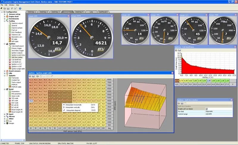 ECUMASTER EMU CLASSIC PL jest zaawansowanym technologicznie uniwersalnym komputerem sterującym pracą silników o zapłonie iskrowym. Kontroluje on wszelkie aspekty działania silnika, oraz zapewnia procedury awaryjne w przypadku uszkodzenia lub niepoprawnej pracy czujników. Dzięki wykorzystaniu najnowszych technologii w dziedzinie elektroniki jak również oprogramowania, urządzenie charakteryzuje się bardzo dużymi możliwościami i atrakcyjną ceną. Głównym zastosowaniem produktu są zmodyfikowane silniki samochodów sportowych, generatory prądu czy łodzie motorowe. Cechy urządzenia 6 wyjść na wtryskiwacze paliwa (5A) 6 wyjść AUX uniwersalncyh (5A) 6 wyjść sterujących cewkami zapłonowymi (7A) 4 wyjścia sterujące bipolarnym/unipolarnym silnikiem krokowym (1A) 2 wejścia EGT 2 wejścia czujników spalania stukowego wbudowany kontroler szerokopasmowej sondy lambda LSU 4.2 wbudowany czujnik ciśnienia 400kPa wbudowany czujnik ciśnienia barometrycznego 4 wejścia częstotliwościowe dla czujników VR/HALL 3 wejścia analogowe (TPS, CLT, IAT) 4 uniwersalne wejścia analogowe (0-5V) zgodność z normą ISO 7637 obsługa 1-12 cylindrów maksymalne obroty 16000 rozdzielczość czasu wtrysku 16us rozdzielczość kąta wyprzedzenia zapłonu 0,5 stopnia detekcja spalania stukowego dla częstotliwości 1-20 kHz algorytm obliczania dawki paliwa Speed Density, Alpha-N mapa VE 16x20, rozdzielczość 0,1% VE mapa zapłonu 16x20, rozdzielczość 0,5 stopnia mapa AFR Target 16x20m, rozdzielczość 0,1 AFR kalibracja napięciowa wtryskiwaczy kalibracja czasu ładowania cewek kalibracja czujników IAT, CLT sterowanie wolnymi obrotami z wykorzystaniem kontrolera PID sterowanie doładowaniem, wtryskiem podtlenku azotu wyjścia parametryczne służące do obsługi pompy paliwa, wentylatorów, etc. funkcje sportowe jak launch control, shift light zależny od biegu, flat shift logowanie ponad 100 parametrów pracy urządzenia obsługa kontrolki check engine komunikacja z komputerem PC za pomocą portu USB przyjazne oprogramowanie z możliwością darmowej wymiany firmwareu instrukcja i pomoc techniczna w języku polskim 24 miesięczna gwarancja Wymagania sprzętowe: Windows 2000, XP, Vista, Windows 7, Windows 8 Rozdzielczość ekranu co najmniej 1024x768 16bit, Procesor z zegarem co najmniej 600MHz, Port USB. Skład zestawu: Urządzenie ECUMASTER EMU CLASSIC PL, Kabel USB AA, Dwie wtyczki, Komplet pinów do wtyczek, Laminowany opis wyprowadzeń. Uwaga: Wersja ECUMASTER EMU CLASSIC PL działa tylko z polską wersją Windows!!! Oprogramowanie do pobrania ze strony www.Ecumaster.com Produkty marki Ecumaster nie są wysyłane do USA, Kanady i Meksyku. Ecumaster brand products are not shipped to the USA, Canada and Mexico.