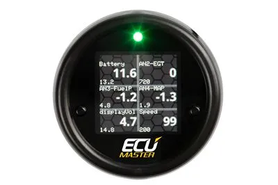 Multi wyświetlacz 52 mm Can-Bus. Urządzenie służące do współpracy z Ecumaster i Can_Checked. KLUCZOWE CECHY:-Bezprzewodowy dostęp do Internetu — połącz się ze smartfonem w celu konfiguracji i personalizacji-Can-Bus — dostęp do naszej kompletnej bazy danych Can Bus (pliki TRI)-Kompaktowy – średnica montażowa 52 mm i głębokość montażowa tylko 12,5 mm pasują właściwie wszędzie-Dodatkowe wejścia – Podłącz dodatkowe czujniki do 6 wejść analogowych-Wstępnie ustawione alarmy – Gotowe ostrzeżenia można łatwo aktywować, a także dostosować. -Logowanie online – (wymagana dodatkowa licencja) Zarejestruj swoje dane za pomocą smartfona i zapisz dziennik pomiarów do późniejszej analizyRóżne poglądy:-6-krotnie-4-krotnie-podwójna wartość-podwójny pasek- Okrągły wyświetlacz-pojedynczy wskaźnik-Podwójna wartość plus pasekOnline DSS – oDSS – Całkowicie nową funkcją MFD15 Gen2 jest dostęp do urządzenia przez WLAN. Nie potrzebujesz już laptopa/komputera do ustawień na swoim wyświetlaczu.Tutaj możesz całkowicie skonfigurować swój wyświetlacz, rejestrować wartości (wymagana licencja), przesłać własny obraz startowy, a także zaktualizować wyświetlacz.MFD15 jest zgodny z ISO 11898-2 i SAE J2284.Producenci jednostek sterujących sami określają, jakie wartości są przesyłane przez interfejs magistrali CAN. Ważna jest tutaj dokumentacja – być może nawet w postaci pliku DBC, który można zaimportować przez DSS . Możesz również uzyskać dostęp do naszej obszernej listy już wdrożonych kontrolerów. Implementowane są dane dostępne w transmisji OBD2 poprzez Can Bus (11bit/29bit). Dostępne są również protokoły specjalne, takie jak UDS.W standardzie są:– OBD2 – 11bit/29bit– Ecumaster Classic i Black– DTAfast– Autobus BMW E46 Can– Autobus BMW E90 Can– Haltech v2– Hondata– KMS van Kronenburg– LinkECU– MaxxECU– Motec M1– Emtrona– Megasquirt 2 i 3– Syvecs– Trijekt– VW/AUDI PQ34/PQ35 itp.– Audi S1 (CJX)– Audi RS3/TT-RS (DAZA, DNWA/B/C)– VW UP GTI (DKRA/B/C/D)Produkty marki Ecumaster nie są wysyłane do USA, Kanady i Meksyku. Ecumaster brand products are not shipped to the USA, Canada and Mexico.