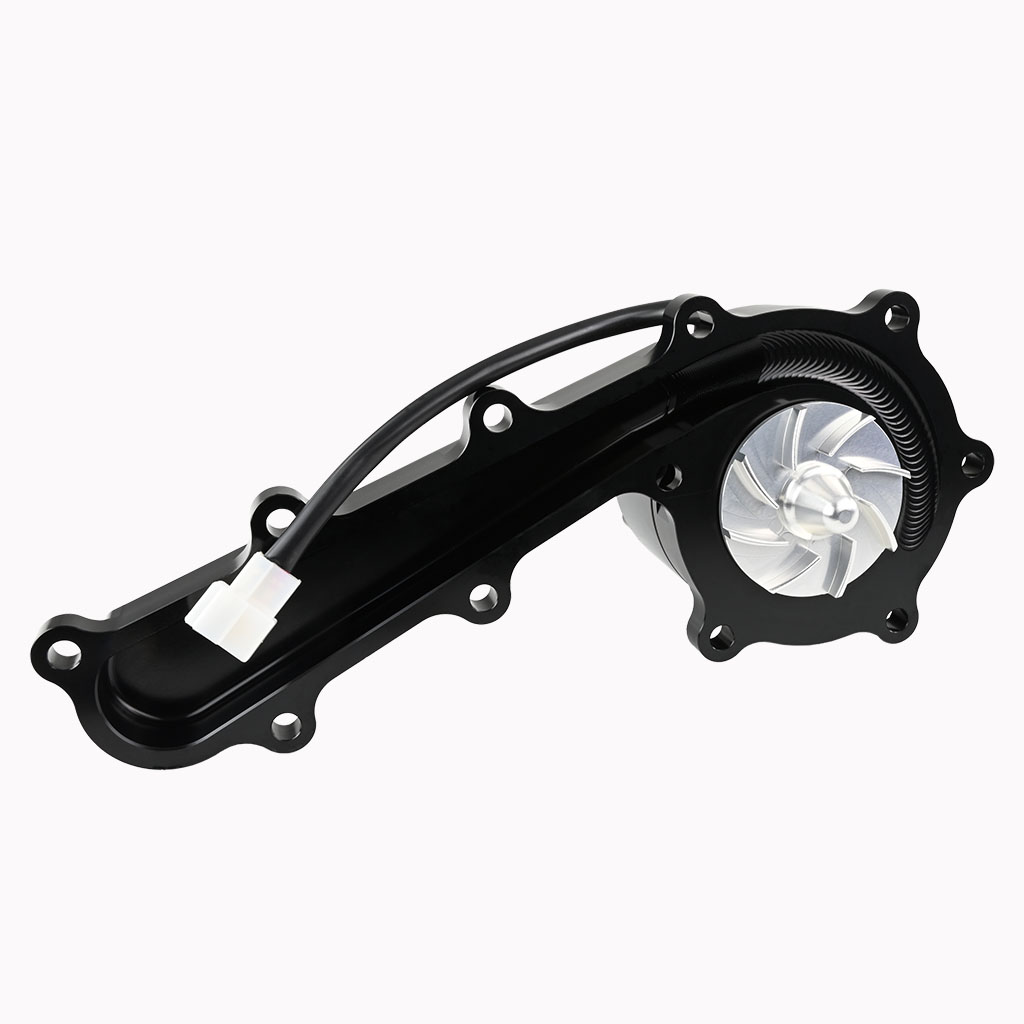 Elektryczna pompa wody FMIC.Pro do silników Nissan TB48 Patrol 1997–2009 Elektryczna pompa wody FMIC.Pro to zaawansowane rozwiązanie dedykowane do silników Nissan TB48, stosowanych m.in. w modelach Patrol z lat 1997–2009. Zastępując klasyczną pompę mechaniczną, umożliwia ona stałe, niezależne od obrotów chłodzenie, co przekłada się na poprawę kontroli temperatury, większą niezawodność i lepsze osiągi – szczególnie w pojazdach po modyfikacjach lub wykorzystywanych w warunkach dużego obciążenia. Brak napędu paskowego zmniejsza opory mechaniczne, co pozwala na wzrost mocy nawet o 10 KM w górnym zakresie obrotów. Pompa może pracować również po wyłączeniu zapłonu, skutecznie chroniąc głowicę i układ dolotowy przed przegrzaniem po intensywnej jeździe. Dzięki kompaktowej i wzmocnionej konstrukcji pompa idealnie sprawdza się w zastosowaniach tuningowych oraz motorsporcie, gdzie kluczowa jest wydajność i odporność na ekstremalne warunki. - Stała, niezależna od obrotów silnika wydajność chłodzenia - Skuteczne chłodzenie także na biegu jałowym i po zgaszeniu silnika - Brak napędu paskowego, mniejsze opory większa moc - Możliwość wzrostu mocy nawet o 10 KM w wyższych zakresach obrotów - Możliwy obieg płynu chłodzącego po zgaszeniu silnika, ochrona turbiny i głowicy - Zwiększona niezawodność w warunkach wysokiej temperatury i obciążenia - Trwała kompaktowa konstrukcja do użytku w motorsporcie i tuningu Dedykowana do: Nissan Patrol TB48 1997–2009