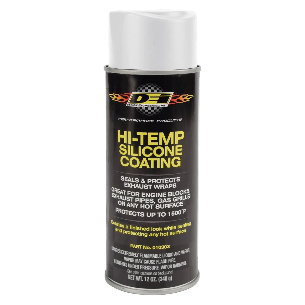Farba żaroodporna Hi-Temp Silicone Coating Spray - biały DEI 010303 USA-DEI-10303 Hi-Temp Silicone Coating Spray rozwiązują problem pogarszających się właściwości bandaży termicznych z powodu brudu i zanieczyszczeń. Uszczelnia i chroni bandaże oraz przedłuża ich żywotność. Hi-Temp Silicone Coating Spray zapewnia trwałą ochronę każdej gorącej powierzchni do 815°C (1500°F). DEI zaleca stosowanie tej powłoki wraz z ich bandażem termicznym, ponieważ uszczelnia ona materiał i zapewnia trwałą ochronę przed olejem, brudem i zanieczyszczeniami drogowymi. Zastosowanie nie ogranicza się tylko do układu wydechowego, ten produkt dobrze sprawdza się przy stosowaniu na głowicę, przy blokach, rozrusznikach, a nawet do grilla w domu. Hi-Temp Silicone Coating Spray jest zgodny z normami VOC (Volatile Organic Compounds) we wszystkich 50 stanach. Do stosowania z wszystkimi bandażami termicznymi DEI dla układów wydechowych, Hi-Temp Silicone Coating Spray penetruje, uszczelnia i chroni, a także pomaga przedłużyć żywotność wszystkich bandaży DEI. Aby uzyskać informacje na temat stosowania w przypadku bandaży termicznych Titanium™, należy zapoznać się z poniższymi instrukcjami. Ochrona przed otarciami, olejem i brudem Wytrzymuje do 815°C (1500°F) Do stosowania przy układach wydechowych, blokach silnikowych, rurach, kolektorach itp. Pojemność puszki 355ml (12 oz) Temperatura utwardzania: 204°C (400°F) Czas utwardzania: 2 godziny Instrukcja stosowania przy bandażach Titanium™ Choć nie jest wymagane w przypadku bandaży Titanium™, powłoka silikonowa HT będzie chronić i przedłużać żywotność tych bandaży. Ze względu na zastosowany materiał, HT Silicone Coating w różnym stopniu wsiąka w bandaż i w przypadku bandaży Titanium™ (włókna bazaltowe) potrzebuje kilku warstw i cyklów cieplnych, do optymalnej pracy. DEI zaleca minimum trzy warstwy, z których każda poddawana jest cyklom cieplnym w celu utwardzenia przed nałożeniem następnej warstwy. Aby się utwardzić, powłoka silikonowa musi osiągnąć temperaturę 204°C (400°F) przez około 2 godziny. Przed nałożeniem następnej warstwy należy odczekać do ostygnięcia. * Hi-Temp Silicone Coating Spray jest sprzedawany w skompresowanym pojemniku z aerozolem. Przepisy ograniczają transport powietrzny produktów łatwopalnych (aerozoli). Jeśli jesteś poza kontynentem amerykańskim i jesteś zainteresowany zakupem produktu DEI w aerozolu, skontaktuj się z naszym biurem pod numerem 1-440-930-7940. Odporność na promieniowanie cieplne: 815°C (1500°F) Kolor: biały