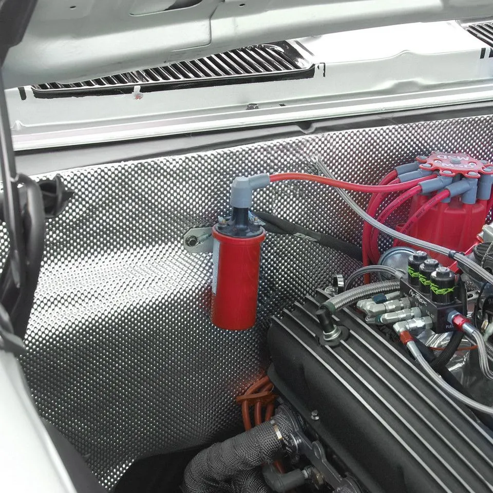 Floor & Tunnel Shield II™ rozwiązuje problem konieczności zastosowania wysokotemperaturowej osłony, która blokuje przenikanie ciepła z dowolnego źródła do wnętrza i zapobiega uszkodzeniom komponentów oraz elektroniki. Stosuj jako barierę odbijającą i izolującą od każdego źródła ciepła. Zaprojektowany, aby zapewnić maksymalną ochronę termiczną w miejscach, gdzie wysokie temperatury są stałe i kłopotliwe, Floor & Tunnel Shield II ogranicza przenoszenie ciepła na grodziach ogniowych, tunelach skrzyni biegów, podłogach, zbiornikach paliwa i w innych obszarach, gdzie ciepło stanowi problem. Floor & Tunnel Shield II zapewnia doskonałą, lekką ochronę termiczną, chroni przed odłamkami z toru i drogi oraz dodatkowo wycisza. Zbudowany z tłoczonej, aluminiowej warstwy 10 mil połączonej z kompozytowym rdzeniem z włókna szklanego o grubości 1/8" i podklejonej wysokotemperaturowym, bardzo mocnym klejem samoprzylepnym, Floor & Tunnel Shield II wytrzymuje do 1750°F. Warstwa klejąca zachowuje przyczepność do 450°F. Udoskonalona, wielopłaszczyznowa nowoczesna powierzchnia aluminiowa zapewnia lepsze odbicie i sztywność oraz ułatwia montaż - strona aluminiowa musi być skierowana w stronę źródła ciepła. Przy grubości zaledwie 3/16" produkt można kształtować i przycinać do indywidualnego dopasowania, co idealnie sprawdza się w miejscach o ograniczonej przestrzeni. Dzięki unikalnemu i opatentowanemu, drobno tkanemu podszyciu z włókna szklanego Floor & Tunnel Shield II jest najłatwiejszym i najbardziej opłacalnym sposobem kontroli transferu ciepła, chroniąc jednocześnie kosztowne komponenty i pasażerów pojazdu przed ekstremalnym żarem i hałasem. Floor & Tunnel Shield II można stosować na wielu powierzchniach, w tym na metalu, aluminium, włóknie węglowym, tworzywach sztucznych i innych. Zastosowania obejmują: grodzie ogniowe, pod maską, tunele skrzyni biegów, panele podłogowe, zbiorniki paliwa oraz zewnętrzne strefy pod pojazdem - wszędzie tam, gdzie trzeba odbić szkodliwe ciepło. Aluminiowa powierzchnia 10 mil z wytłoczeniami Ochrona przedziału silnikowego Ochrona lakierowanych elementów nadwozia Komfortowe wnętrze w każdych warunkach Wysokotemperaturowy klej do montażu „raz a dobrze” Ekstremalna bariera cieplna - strona aluminiowa powinna być skierowana w stronę ciepła Tylko 3/16" grubości Stosuj jako barierę odbijającą i izolującą od każdego źródła ciepła Świetny do zastosowań zewnętrznych *NIE nakładać bezpośrednio na elementy układu wydechowego. Backing: Adhesive Odporność na ciepło bezpośrednie: 1750°F Linia produktów: Floor & Tunnel Old Part Number: 050503