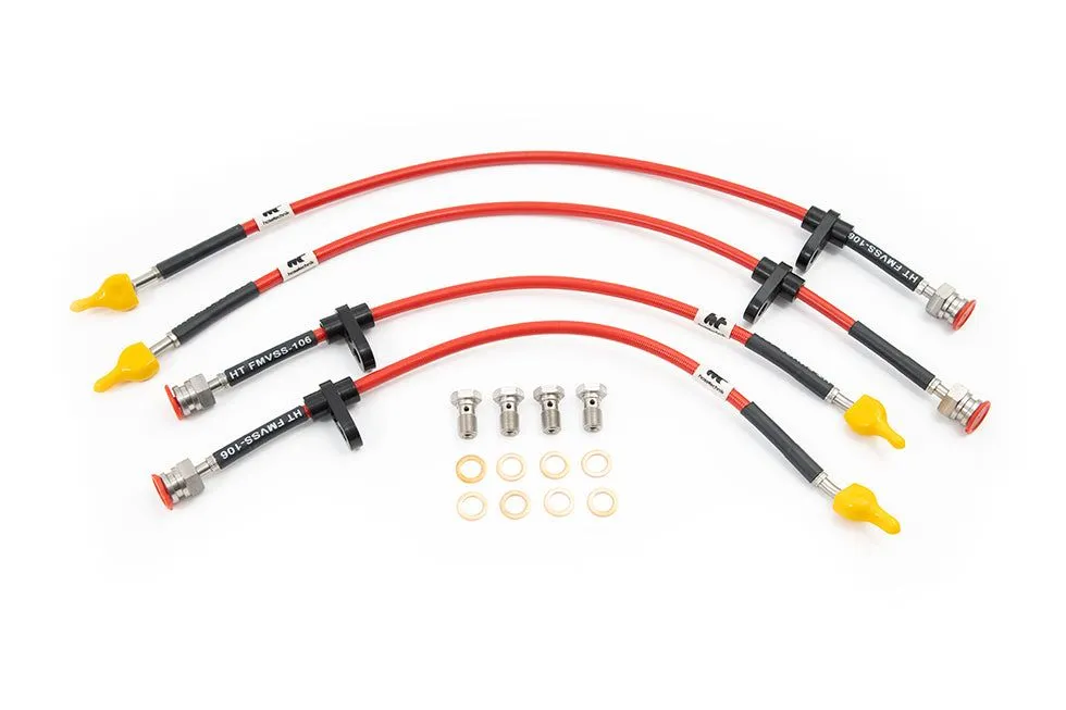 A set of 4 ultra-high performance brake lines for the Ford Puma ST. These are a direct replacement/upgrade for the OEM brake line set and require no further modifications to fit.