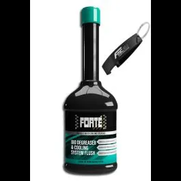 Forté Bio Degreaser & Cooling System Flush jest złożoną mieszanką kwasów organicznych i środków antykorozyjnych. Usuwając osady oleju, szlamu, kamienia i rdzy z wewnętrznych części układu chłodzenia przywraca efektywną wymianę ciepła i zapobiega awarii silnika oraz usterkom związanym z nieodpowiednią temperaturą. Forté Bio Degreaser & Cooling System Flush stosowany w układzie chłodzenia silnika zapewnia następujące korzyści: oczyszcza układ chłodzenia z oleju, który przedostał się do układu chłodnicy np. wskutek awarii uszczelki pod głowicą, oczyszcza układ chłodzenia z kamienia i rdzy, które odłożyły się na wewnętrznych powierzchniach chłodnicy i płaszcza wodnego silnika. Zanieczyszczenia następnie mogą zostać usunięte z układu poprzez płukanie przywraca zdolność odprowadzania ciepła przez układ chłodzenia, pozytywnie wpływa na smarowanie silnika dzięki mniejszemu obciążeniu termicznemu oleju silnikowego. przywraca wymaganą temperaturę roboczą, a w konsekwencji optymalna pracę silnika, redukuje zagrożenia związane z przegrzewaniem się silnika i jego kosztownymi konsekwencjami. przywraca optymalną pracę nagrzewnicy. Forté Bio Degreaser & Cooling System Flush jest całkowicie bezpieczny do użytku w układach chłodzenia. Środek Forté Bio Degreaser & Cooling System Flush jest zgodny ze wszystkimi produktami zapobiegającymi zamarzaniu, opartymi na glikolu. Nadaje się do stosowania w układach napełnianych na cały okres eksploatacji („fill for life”). W celu utrzymania prawidłowej wymiany ciepła i optymalnej sprawności silnika, zalecamy czyszczenie układu chłodzenia za pomocą tego preparatu przynajmniej raz do roku. Sposób użycia: Dodać Forté Bio Degreaser & Cooling System Flush do systemu chłodzenia, zastosować w ilości 20% objętości systemu chłodzenia.Rozgrzać silnik do temperatury pracy i pozostawić 20-30 minut na zwiększonych obrotach. Termostat i ogrzewanie powinny być włączone. Następnie opróżnić system chłodzenia. Chłodnice i płaszcz wodny przepłukać czystą wodą. Napełnić układ nowym płynem chłodzącym. Zalecamy dolanie preparatu Forté Advanced Radiator Stop Leak do cieczy chłodzącej, celem zapewnienia ciągłej ochrony przed rdzą, kamieniem, oraz w celu przeciwdziałania mikropęknięciom. W zestawie otwieracz FMIC