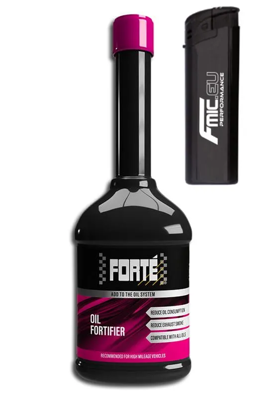 Forte Oil Fortifier Booster w zestawie z zapalniczką FMIC Preparat obniża spalanie oleju. Został stworzony zgodnie z najnowszymi osiągnięciami w dziedzinie technologii olejów silnikowych. Wielokilometrowe jazdy próbne przy wykonywaniu testów na wielu różnych silnikach udowodniły skuteczność tego produktu w przywracaniu sprawności silnika. Rezultatem jego zastosowania jest przedłużenie okresu eksploatacji silnika poza moment, gdy w normalnych warunkach wymagane są już duże naprawy lub remonty. Może być stosowany zarówno w silnikach benzynowych jak i wysokoprężnych (diesla). Preparat jest wysoce skuteczny i w 100% bezpieczny dla silnika. Preparat Oil Fortifier stosowany w skrzyni korbowej silnika zgodnie z zaleceniami producenta zapewnia następujące korzyści: Zmniejsza zużycie paliwa w silnikach wykazujących oznaki silnej eksploatacji. Dzięki polepszeniu szczelności pierścieni tłokowych zmniejsza ilość widocznych gazów wydechowych. Zwiększa kompresję silnika. Zwiększa ciśnienie oleju, co daje lepszą ochronę części ruchomych. Spowalnia zużywanie się silnika i przedłuża okres jego eksploatacji. Neutralizuje kwasy obecne w skrzyni korbowej i zmniejsza wynikające z tego problemy. Przywraca sprawność silników, które z różnych przyczyn nie pracują z pełną mocą. Oil Fortifier zmniejsza konsumpcję oleju silnikowego poprzez: 1. Zwiększenie wskaźnika lepkości oleju (nie gęstości!). Oznacza to zwiększenie "grubości" filmu olejowego po rozgrzaniu silnika co zapobiegnie jego zużyciu oraz podniesie kompresję. 2. Oczyszczenie pierścieni tłokowych. Nasz booster olejowy posiada pakiet dodatków, które oczyszczają silnik m.in. z nagarów, co także pozwala zmniejszyć zużycie oleju. Sposób użycia:Dolać 400 ml Forté Oil Fortifier do 4 litrów nowego oleju po uprzednimprzeczyszczeniu silnika preparatem Forté Motor Flush. W silnikacho większej pojemności zastosować 10% preparatu w stosunku do ilościużytego oleju.