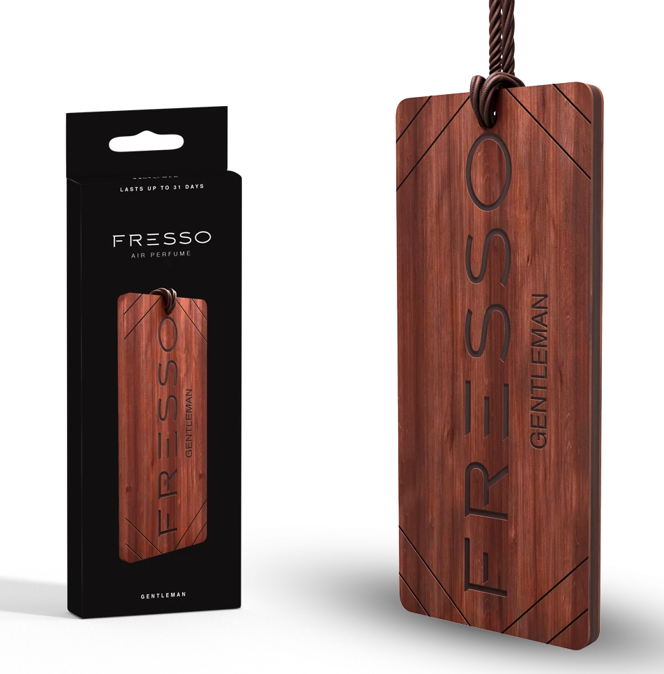 GENTLEMAN Aromatyczna mieszanka wibrujących nut przyprawowych i ziół w postaci arystokratycznej, relaksującej lawendy, rukwi wodnej oraz egzotycznych nut drzewnych. Słodka wanilia i ciepły charakter paczuli czyni tę ostrą kompozycję przyjemnie otulającą jak dotyk kaszmirowego garnituru. DREWNIANA ZAWIESZKA Elegancka, drewniana zawieszka zapachowa wzbogacona w brązowy, pleciony sznurek to wyszukany dodatek, który będzie znakomicie pasował do każdego wnętrza samochodu. Zawieszka Fresso pozytywnie Cię zaskoczy, gdyż ma unikalną formę, a jej zapach jest trwały i genialnie skomponowany.Ze względu na naturalne pochodzenie zawieszki nieznacznie różnią się od siebie wyglądem tworząc przy tym unikalność i wyjątkowość produktu. Sposób użycia: Wyjmij zawieszkę z pudełka. Zdejmij folię i zamontuj zawieszkę pod lusterkiem. Uwaga! Powiesić zawieszkę swobodnie unikając kontaktu od powierzchni delikatnych, plastiku, skóry itp.. Producent nie ponosi odpowiedzialności za użytkowanie produktu niezgodne z jego przeznaczeniem. W przypadku złego samopoczucia lub zawrotów głowy natychmiast zaprzestać użytkowania produktu. Czynniki obniżające trwałość oraz wyczuwalność zapachu: Niska temperatura (poniżej 5 stopni Celsjusza) lub skrajnie wysoka temperatura (powyżej 30 stopni Celsjusza) Regularne zostawianie auta w pełnym słońcu Brak utrzymywania czystości w aucie Obecność innych (również zużytych) zapachów w aucie Przyzwyczajenie do zapachu Brak okresowego czyszczenia klimatyzacji Intensywny zapach tapicerki w aucie