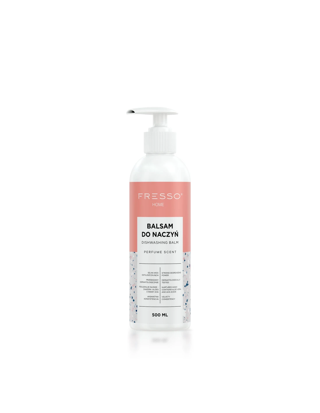 Najważniejsze cechy produktu: Doskonały w walce z tłuszczem. Silna formuła usuwa trudne zabrudzenia. Mocno skoncentrowana, gęsta i aksamitna konsystencja. Zawiera kompleks pielęgnujący dłonie, na bazie aloesu i kwasów AHA. Posiada neutralne dla skóry pH, przebadany dermatologicznie. Produkt o przyjemnym, eleganckim zapachu. Stworzony w ponad 96% ze składników naturalnych. W 100% biodegradowalny. Ten musujący zapach łączy żywą świeżość owoców cytrusowych z nieco pikantnym ciepłem kardamonu i cynamonu. Kwiat pomarańczy dodaje rześkiej słodyczy, co tworząc wykwintną fuzję z wanilią i fasolą tonka, nadaje całości kompozycji kojący akcent. Balsam do mycia naczyń Fresso to bezapelacyjny profesjonalista w pozbywaniu się wszelkich zabrudzeń z Twoich naczyń. Jego receptura została stworzona tak, aby z pełną mocą usuwać tłuszcz i nawet zaschnięte pozostałości z zastawy stołowej, garnków, patelni, sztućców i innego wyposażenia kuchennego. Skutecznie skomponowane środki aktywne wraz z gęstą, aksamitną konsystencją sprawiają, że balsam bardzo dobrze się pieni, ułatwiając zmywanie. Formuła jest również wzbogacona o wyciąg z aloesu oraz kwasy AHA, przez co ma działanie regenerujące i pielęgnujące dla dłoni. W składzie produktu występuje przyjazny dla środowiska detergent na bazie oleju Canola (olej rzepakowy o przeznaczeniu kosmetycznym), który sprawia, że stosowanie produktu wpływa pozytywnie na nawilżenie, a w efekcie gładkość i miękkość Twojej skóry. Produkt posiada neutralne dla skóry pH i jest przebadany dermatologicznie. Zawiera składniki zabezpieczające sztućce przed działaniem korozyjnym. Balsam wyróżnia autorska, owocowo - korzenna kompozycja zapachowa, która sprawia, że zmywanie staje się o wiele przyjemniejsze. Zamknięty w estetycznym, pastelowym opakowaniu stylowo prezentuje się w każdej aranżacji kuchennej. Sposób użycia: Za pomocą dozownika nanieś 1-2 porcje balsamu (w zależności od rodzaju i stopnia zabrudzeń) na gąbkę do mycia naczyń. Umyj naczynia. Spłucz pod bieżącą wodą. Pojemność: 500ml