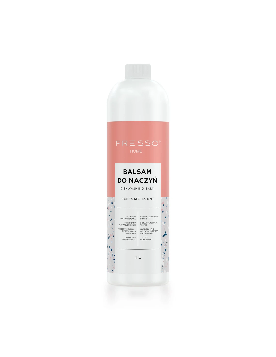 Najważniejsze cechy produktu: Doskonały w walce z tłuszczem. Silna formuła usuwa trudne zabrudzenia. Mocno skoncentrowana, gęsta i aksamitna konsystencja. Zawiera kompleks pielęgnujący dłonie, na bazie aloesu i kwasów AHA. Posiada neutralne dla skóry pH, przebadany dermatologicznie. Produkt o przyjemnym, eleganckim zapachu. Stworzony w ponad 96% ze składników naturalnych. W 100% biodegradowalny. Ten musujący zapach łączy żywą świeżość owoców cytrusowych z nieco pikantnym ciepłem kardamonu i cynamonu. Kwiat pomarańczy dodaje rześkiej słodyczy, co tworząc wykwintną fuzję z wanilią i fasolą tonka, nadaje całości kompozycji kojący akcent. Balsam do mycia naczyń Fresso to bezapelacyjny profesjonalista w pozbywaniu się wszelkich zabrudzeń z Twoich naczyń. Jego receptura została stworzona tak, aby z pełną mocą usuwać tłuszcz i nawet zaschnięte pozostałości z zastawy stołowej, garnków, patelni, sztućców i innego wyposażenia kuchennego. Skutecznie skomponowane środki aktywne wraz z gęstą, aksamitną konsystencją sprawiają, że balsam bardzo dobrze się pieni, ułatwiając zmywanie. Formuła jest również wzbogacona o wyciąg z aloesu oraz kwasy AHA, przez co ma działanie regenerujące i pielęgnujące dla dłoni. W składzie produktu występuje przyjazny dla środowiska detergent na bazie oleju Canola (olej rzepakowy o przeznaczeniu kosmetycznym), który sprawia, że stosowanie produktu wpływa pozytywnie na nawilżenie, a w efekcie gładkość i miękkość Twojej skóry. Produkt posiada neutralne dla skóry pH i jest przebadany dermatologicznie. Zawiera składniki zabezpieczające sztućce przed działaniem korozyjnym. Balsam wyróżnia autorska, owocowo - korzenna kompozycja zapachowa, która sprawia, że zmywanie staje się o wiele przyjemniejsze. Zamknięty w estetycznym, pastelowym opakowaniu stylowo prezentuje się w każdej aranżacji kuchennej. Sposób użycia: Za pomocą dozownika nanieś 1-2 porcje balsamu (w zależności od rodzaju i stopnia zabrudzeń) na gąbkę do mycia naczyń. Umyj naczynia. Spłucz pod bieżącą wodą. Pojemność: 1L
