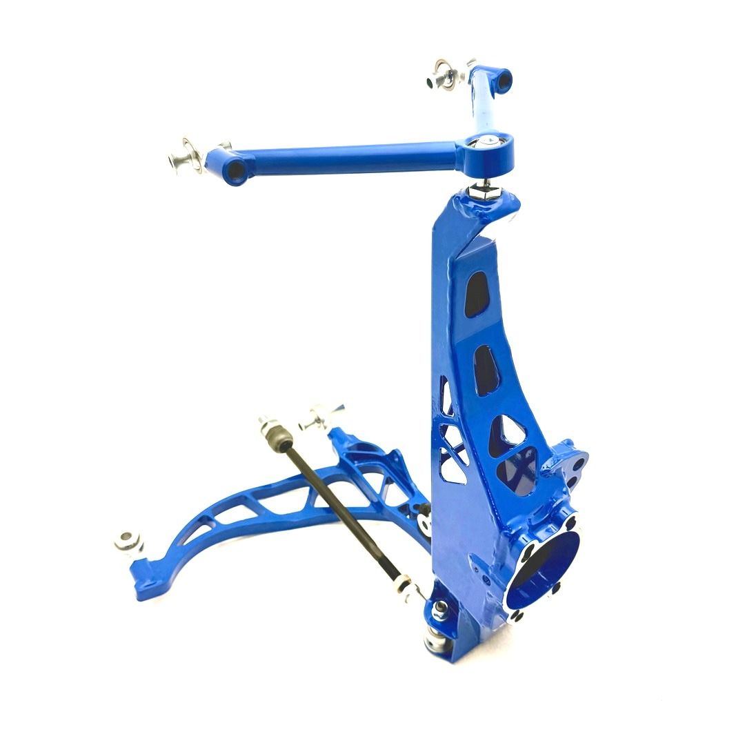Wisefab Nissan 350Z Narrow Angle Kit Wisefab Nissan 350Z Narrow Angle Kit to idealne połączenie dużego kąta skrętu i dopasowania zgodnego z OEM. Zestaw został zaprojektowany dla kierowców driftu na poziomie grassroots, uczestników track day oraz zawodników klubowych, którzy chcą poczuć prawdziwą geometrię Wisefab i precyzję układu kierowniczego bez przechodzenia na pełną specyfikację zawodniczą. Kit zapewnia charakterystyczne prowadzenie Wisefab, szybkie przejścia oraz ogromny lock, jednocześnie utrzymując koła w obrębie seryjnych nadkoli. Bez poszerzeń, bez cięcia karoserii – tylko funkcjonalna geometria driftowa do realnego użytkowania. Cechy Ponad 55° skrętu, równoległe prowadzenie kół Regulacja Ackermanna Dzięki dołączonemu zestawowi regulacyjnemu możliwa jest szybka zmiana geometrii na dodatni lub ujemny Ackermann w kilka minut, nawet na torze, bez naruszania ustawień zbieżności Jednoczęściowy dolny wahacz Rozwiązanie dwuczęściowe ma zalety w jeździe torowej, jednak w drifcie przy dużych kątach skrętu sztywność i zabudowa stanowią ograniczenie, dlatego zastosowano wahacz jednoczęściowy Podniesiony roll center (RC) Zwrotnica Wisefab posiada obniżone punkty mocowania przegubów, co podnosi przedni roll center w obniżonym aucie Zwiększa sztywność przechyłów i eliminuje konieczność stosowania przedniego stabilizatora, trudnego do montażu przy dużym locku Bardzo dobra kontrola camber oraz minimalny bump steer przy wysokich kątach skrętu Kinematyka Wisefab zapewnia wysoką przyczepność przodu i stabilne zachowanie w całym zakresie skrętu Kontrola steering jacking Zmieniona geometria ogranicza negatywne efekty unoszenia zawieszenia przy dużych kątach skrętu Stały i przewidywalny moment samopowrotu kierownicy Odpowiednia kombinacja parametrów zapewnia płynne samocentrowanie i zapobiega blokowaniu się kierownicy na pełnym skręcie Regulowane ograniczniki skrętu Możliwość użycia fabrycznych czujników ABS Zawartość zestawu Wstępnie ustawione górne i dolne wahacze Zwrotnice z kompletem elementów montażowych Zmontowane drążki kierownicze Instrukcja montażu Zalecenia montażowe Rekomendowana geometria Camber: -5.5° Caster: 5.7° Toe: Ackermann 0 lub ujemny: całkowita zbieżność 2 mm Ackermann dodatni: całkowita zbieżność 0 mm Dopasowanie kół Minimalny rozmiar felgi: 17" Zalecane: 17x8.5" ET30 18x8.5" ET30 Pasuje pod seryjne nadkola OEM
