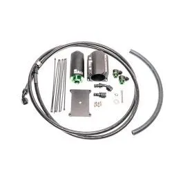 The Radium Engineering fuel surge tank hanger permits the use of 1, 2, or 3 aftermarket high pressure pumps and 1 lift pump in the stock Mazda FD RX7 fuel tank. It is compatible with following models:93-95 Mazda FD RX-7 (US)92-02 Mazda FD RX-7 (JDM) FUEL FEED KITS: 20-0455-0X FUEL HANGER FEED KIT, FD RX7 The feed kits use high flowing -8AN fuel lines. A Radium 1/2" fuel/PCV feed hose runs from the fuel pump hanger outlet to a Radium Engineering fuel filter secured to the rear subframe. From there a pre-made -8AN PTFE feed line runs all the way to the engine bay where it is up to the user to adapt the 45 degree hose end to their specific fuel system. The fuel lines clear the OEM fuel pump cover and all suspension related parts. No cutting or drilling is required to get the feed line past the fuel tank. The included Radium Engineering fuel filter assembly mounts to the rear subframe underneath the vehicle using a specifically designed FD RX7 bolt-on billet mount. The filter is mounted through a Radium Engineering heat exchanger to keep fuel temperatures down. Depending on the kit selected (-01,-03, -05), the fuel filter will be assembled with 1 of 3 different elements. INCLUDES-Fuel Filter (-03 Stainless, or -05 Microglass)-Fuel Filter Heat Exchanger Bracket (Laser engraved graphics may vary)-FD RX7 Fuel Filter Mount-8AN PTFE Fuel Feed Hose-Radium Fuel/PCV 1/2" Hose-Black 8AN Adapter Fittings-Black 8AN Hose Ends-Stainless Steel Hardware