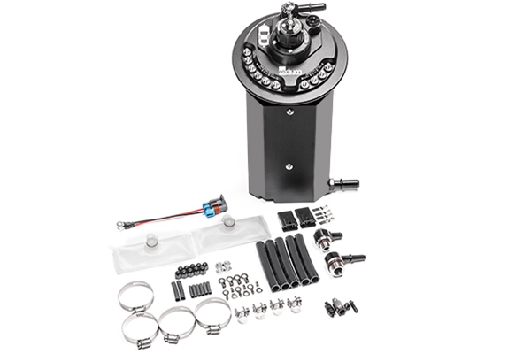 OVERVIEW The Radium Engineering pump hanger is an excellent solution for increasing the fuel flow on modified 2011+ Ford Mustang vehicles. It can be used with 1 or 2 aftermarket pumps, with several pump options available. This drop-in unit replaces the OEM in-tank fuel pump module and is safe for use with alternative fuels such as E85.The Radium Engineering fuel pump hanger features a carefully designed collector box that keeps fuel trapped around the fuel pump(s).Inside, the fuel pumps are carefully packaged, along with the associated wiring and plumbing. Fuel is fed out of the top plate through a single threaded port and low-profile adapter fitting. Fuel pressure is regulated inside the Radium hanger and is adjustable. The OEM fuel level sender is transferred onto the Radium hanger, so full functionality is retained. The OEM fuel tank access cover and rear seat bench fit without modifications. FEATURES Drop-In Installation Permits 1 or 2 Pumps Integrated 1:1 Adjustable FPR Fuel Starvation Protection High Current Electrical Hardware Compatibility with Popular Fuel Pumps Anodized Aluminum Construction Gasoline, Methanol, Ethanol Compliant Fuel Resistant Tubing and Wiring Stainless Steel Hardware New Anti-rotation Electrical Terminals IMPORTANT NOTE: This fuel pump hanger is only sold without pumps pre-installed. Pumps must be installed by the end user/installer. Refer to the installation instructions linked above. Pumps may be purchased with the hanger, but they will not be pre-installed. PUMP COMPATIBILITY To choose the correct fuel hanger version, first determine what fuel pump(s) will be use, see below. Once fuel pumps are decided, select the fuel pump hanger part number that is compatible with the chosen pumps. NOTE: Fuel pumps are sold separately. 20-1802 Walbro F90000267 Walbro F90000274 Walbro F90000285 *Walbro F90000295 *Bosch BR540 DW400 DW440 (brushless) *DW810 (brushless) Protec 11928 (brushless) Fuelab 49614 (brushless) *These pumps do not feature an integrated check valve. If installing 2 pumps, they cannot be staged. Instruction PDF