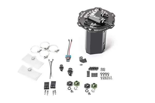 Fuel Pump Hanger, EVO X OVERVIEWThe new Radium Engineering fuel pump hanger for the Mitsubishi EVO X has been redesigned for improved fuel collection and easier installation. It completely replaces the factory in-tank fuel pump module and allows 1 or 2 aftermarket fuel pumps to be used. The OEM level sender, fuel temperature, and fuel tank pressure sensor are retained in order to maintain factory functionality. Please note that product may differ slightly from what is shown in photos. FEATURES 8AN ORB Female Pump-Out Port 6AN ORB Female Return Port Collector Box with 1-Way Fill Valve Venturi Jet Pump Siphon Single Merged Fuel Pump Outlet High Current Electrical Connections Black Anodized Adapter Fittings Fuel Level and Temp Sensor Mount Twin Fuel Pump Compatibility Stainless Hardware and Clamps Anti-Rotation Stainless Terminals Alternative Fuel Compatibility NOTES ABOUT PUMP CONFIGURATIONThere will be enough components included with this option to use 1 or 2 fuel pumps. Depending on the setup, some parts will simply not be used. This system is compatible with the following fuel pumps: 20-1642*Walbro F90000267*Walbro F90000274*Walbro F90000285 COMPATIBILITY08-15 Mitsubishi Lancer Evolution X