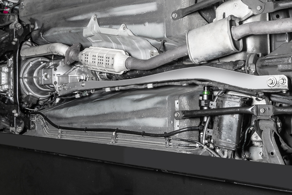 A large 8AN feed line runs around the backside of the fuel tank. This line mates to a new high flow fuel filter mounted in the OEM location using a billet mount. A 10 micron stainless steel (-03) or a 6 micron microglass (-05) element is used depending on the kit selected.