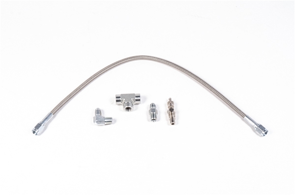 In some cases, mounting a fuel pressure gauge or pressure transducer directly to the fuel rail is not possible due to confined space around the fuel rail, or the fuel gauge would not be easily visible. In these cases it is ideal to remote mount the pressure gauge or transducer.This kit contains all the necessary parts to remote mount a gauge or transducer for testing fuel pressure. The kit works with any fuel rail or pressure regulator that has a 1/8NPT female port.The kit also contains a Schrader valve that can be used for pressure testing, bleeding air out of the line, fuel sampling, or relieving fuel pressure before service. This kit can be used as single-use tool, or it can be left on the vehicle as a permanent component.The Kit Contains:1x 16" High Pressure PTFE 3AN Hose1x 1/8NPT to 3AN Male Adapter, 90 degree1x 1/8NPT to 3AN Male Adapter, Straight1x 1/8NPT 3-way Tee Fitting, Female1x 1/8NPT Schrader valve with cap**Always use PTFE tape or paste on NPT threads**GAUGE NOT INCLUDED.