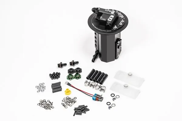 20-1074 COMPATIBILITY2022+ Toyota GR862022+ Subaru BRZ OVERVIEWThe new Radium Engineering fuel pump hanger has been redesigned for improved fuel collection and for ease of installation. It completely replaces the factory in-tank fuel pump module and allows 1 or 2 aftermarket fuel pumps to be used. The OEM level sender is retained in order to maintain factory functionality. FUEL PUMP COMPATIBILITY*Ti Automotive Walbro F90000267*Ti Automotive Walbro F90000274*Ti Automotive Walbro F90000285**Deatschwerks DW440 (brushless)**Fuelab 49614 (brushless)**Protec 11928 (brushless) FEATURES-8AN ORB to 8AN Male Pump-Out Fitting-6AN ORB to 6AN Male Return Fitting-Collector Box with 1-Way Fill Valve-Venturi Jet Pump Siphon-High Current Electrical Connections-Anodized Fuel Level Sender Mount-Twin Fuel Pump Compatibility -Brushless Pump Compatibility-Single Merged Fuel Pump Outlet-Stainless Hardware and Clamps-Alternative Fuel Compatibility PREVENTING FUEL STARVATIONThe kit includes a 1-piece anodized aluminum collector box that makes installation a breeze and keeps fuel trapped around the pump inlet(s). There is a 355 LPH 1-way fill valve incorporated in the bottom of the collector that allows fuel in, but not out. Instruction PDF