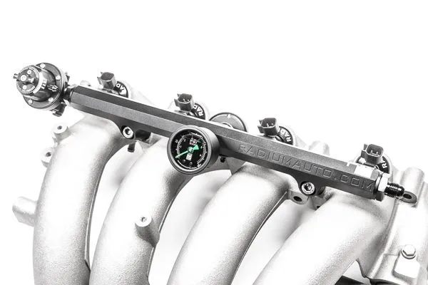 This Radium Engineering fuel rail is a direct bolt-on with all twin cam Nissan KA24DE engines. Manufactured with a large 0.69" internal bore, the fuel rail can support all necessary engine power requirements. The Radium fuel rail converts the OEM side feed fuel injector setup to top feed allowing the use of high flow 14mm O-ring fuel injectors (not included).