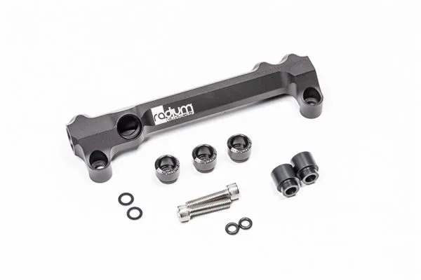 Appropriate fittings must be selected based on the specific application. Ample space around the fuel rail port(s) is necessary for larger accessories such as fuel pressure regulators, fuel pressure gauges, and fuel pulse dampers. To verify clearance, the dimensional drawings on the product pages can be used as a reference guide.
