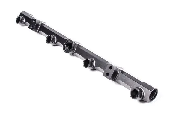 The fuel rail ports are tapped for 8AN ORB.