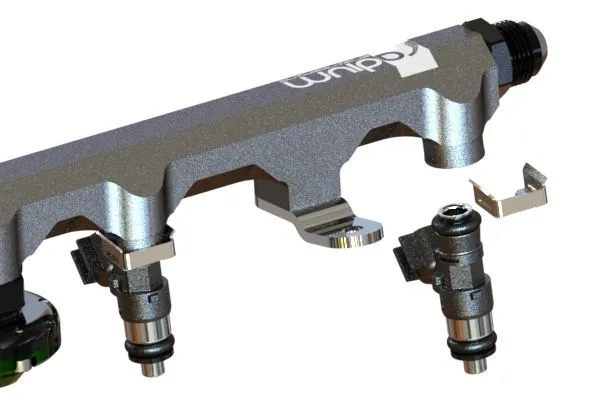 Appropriate fittings must be selected based on the specific application. Ample space around the fuel rail port(s) is necessary for larger accessories such as fuel pressure regulators, fuel pressure gauges, and fuel pulse dampers. To verify clearance, the dimensional drawings on the product pages can be used as a reference guide.
