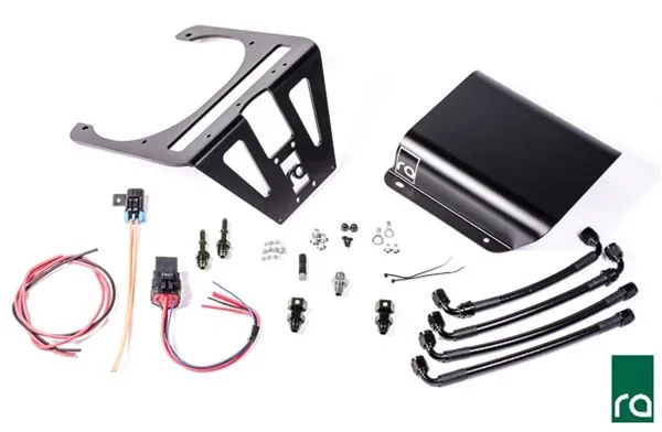This comprehensive installation kit includes everything needed to install a Radium fuel surge tank with a single 39mm fuel pump in a Porsche (996) 911 Turbo. The Porsche 996 Turbo install kit locates the FST in a collision-safe area of the trunk, centered in front of the fuel tank allowing the majority of the trunk to be useable. The anodized aluminum bracket solidly mounts to the OEM fuel pump cover studs and an aluminum replacement fuel pump cover is included. The OEM fuel pump hanger utilizes a sensitive dual venturi pump system that cannot be easily altered. This FST install kit includes a specifically designed FST orifice that keeps the necessary pressure in the OEM venturi system. To adapt the PTFE hoses to the OEM Porsche lines, Radium has designed special low profile SAE quick disconnect fittings that are provided in the kit. Included: -Preassembled 3/8" (-6AN) PTFE Hoses -Aluminum Mounting Bracket-Aluminum Pump Hanger Cover-AN and OEM Style Adapter Fittings-Stainless Steel Hardware -Wiring Components with Relay and Fuse-Solderless Heat Shrink Connectors Instruction PDF