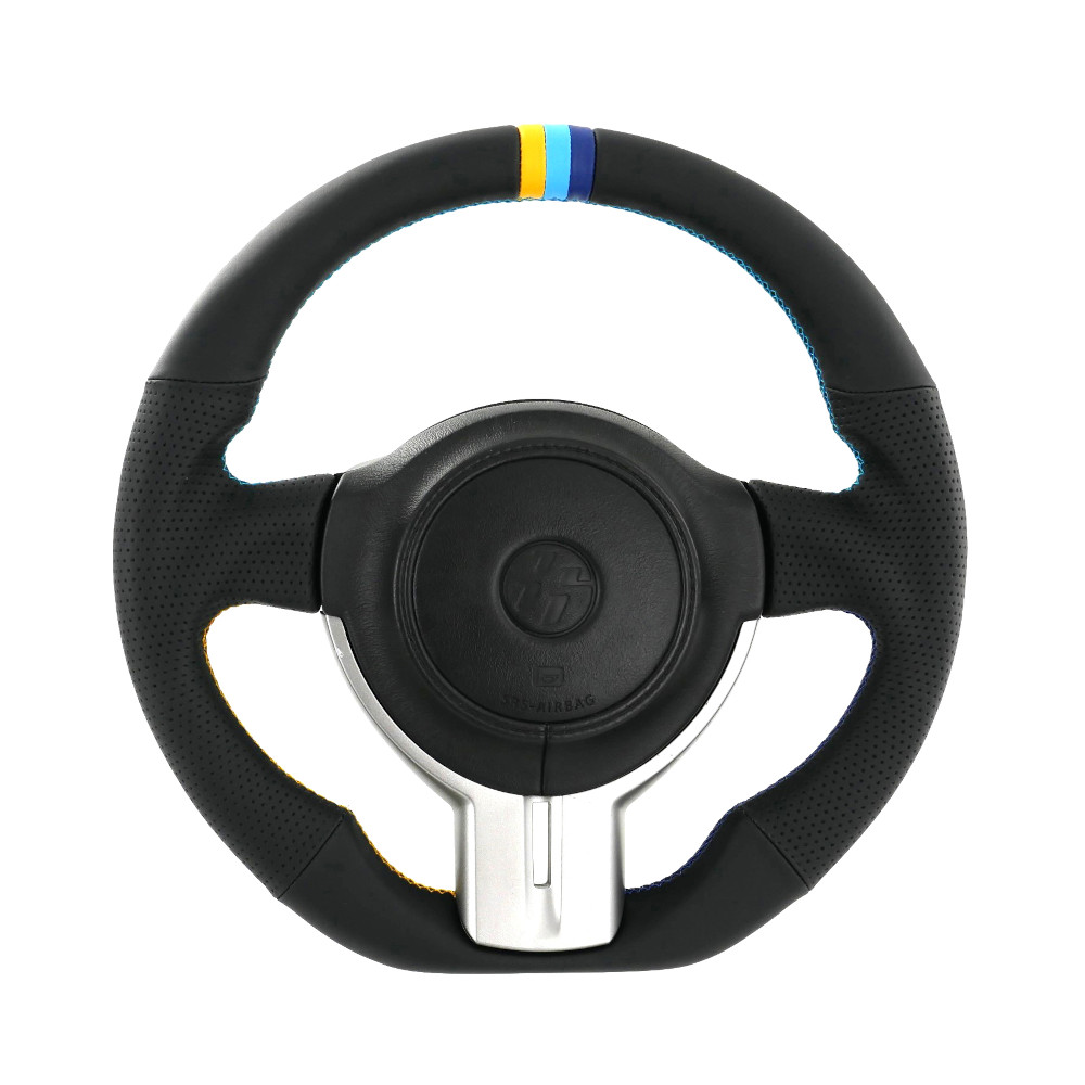 GReddy ZN6 / ZC6 Steering WheelTo suit Toyota GT86 ZN6 / Subaru BRZ ZC6 "zenki" (12-16)True to the OE steering wheel designDiameter : 355 mmHigh-quality black leather upholsteryHand-made GReddy 3-color centering stripe and stitchingLightweight and highly rigid frameCompatible with genuine steering wheel partsGReddy Black Leather Steering Wheel with 3-Color Stripe for Toyota GT86 (12-16) SpecificationsDesigned for the early Toyota GT86 ZN6 and Subaru BRZ ZC6 models (2012-2016), this GReddy steering wheel enhances the driving experience by providing superior comfort while retaining the design and functionality of the standard steering wheel. It is covered in full and breathable black leather with pistol grip sides for an excellent grip.With a diameter of 355 mm, this steering wheel allows for more direct handling by limiting the extent of movement. It rests on a light, rigid frame and features hand-made center mark and stitching in the GReddy colours (blue, yellow and navy).The parts supplied with the genuine steering wheel, the airbag and the paddle shifters can be transferred as they are to this GReddy steering wheel. The airbag, switches, paddle shifters and covers are not included.