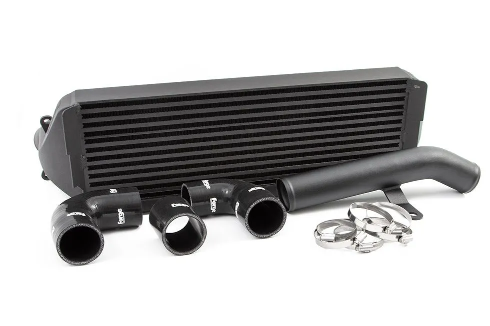 The inlet and outlet sizes have been increased in diameter to 65mm, giving an increase of 27% more volume over the stock cooler to give perfect flow. The development team also added a custom hard pipe increasing the diameter by 14 mm to 64mm up from the factory 50mm. This replaces the stock factory pipe on the hot side to ensure this package gives you all you need for maximum performance gains on high levels of tune.The boost pipe and intercooler come in our standard black textured finish powder coat for maximum longevity.