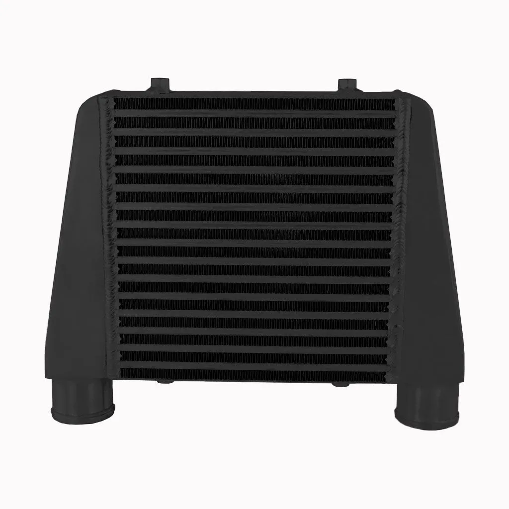 Intercooler o wymiarach rdzenia: 280x280x76mm, całkowite wymiary: 415x330x76mm, średnica wlot/wylot 63mm, wydajność do mocy 550KM. Posiada bardzo wydajny, zarówno wewnętrzny, jak i zewnętrzny rdzeń drugiego typu, grube ścianki wykonane z najwyższej jakości polerowanego aluminium, co gwarantuje ogromną wytrzymałość, świetne chłodzenie, a także doskonałe przepływy powietrza (w przeciwieństwie do intercoolerów z samochodów dostawczych nie "zapychają" dolotu). Znakomicie zastępują seryjne intercoolery zwiększając osiągi samochodu. Nasze intercoolery jako jedyne były testowane ciśnieniem ponad 10 barów - nawet tak duże ciśnienie nie robi na nich żadnego wrażenia. Intercoolery posiadają wytłoczone logo FMIC.EU, które wyróżnia je z tłumu "podobnych" chłodnic dostępnych na rynku. Kupując nasz cooler masz gwarancję otrzymania produktu o najwyższej jakości wykonania ze świetnymi przepływami, charakteryzujący się znakomitym chłodzeniem! W przeciwieństwie do podobnych intercoolerów sprzedawanych w internecie, wszystkie sprzedawane przez nas chłodnice posiadają nowy, dużo wydajniejszy rdzeń drugiego typu! Stary rdzeń widoczny po prawej stronie miał bardzo rzadlko ułożone żeberka, do tego tylko w jednym rzędzie (patrząc przez wlot było widać wylot), co skutkowało słabym chłodzeniem - przelatujące nim powietrze nie oddawało całego ciepła. Za odprowadzenie ciepła odpowiedzialny jest zupełnie nowy, zewnętrzny, złożony z dwóch warstw rdzeń. Jego wewnętrzna część posiada cienkie, dodatkowo nacinane lamelki, które dzięki swojej przewiewności znakomicie oddają ciepło. Ich odpowiednie ułożenie oraz widoczne na zdjęciu nacięcia gwarantują optymalną wentylację (ogromna poprawa chłodzenia w porównaniu do zewnętrznego, montowanego w tańszych coolerach, gęstego rdzenia), natomiast zewnętrzna, mocna warstwa lamelek chroni go przed uszkodzeniami mechanicznymi. Kolor - Czarny Intercooler - FMIC.EU