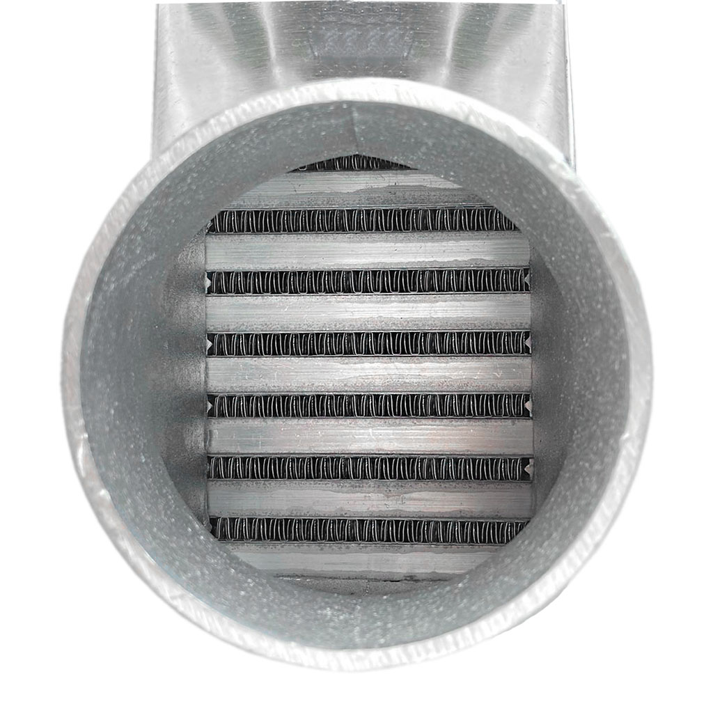 Posiada bardzo wydajny, zarówno wewnętrzny, jak i zewnętrzny rdzeń drugiego typu, grube ścianki wykonane z najwyższej jakości polerowanego aluminium, co gwarantuje ogromną wytrzymałość, świetne chłodzenie, a także doskonałe przepływy powietrza (w przeciwieństwie do intercoolerów z samochodów dostawczych nie "zapychają" dolotu). Znakomicie zastępują seryjne intercoolery zwiększając osiągi samochodu.