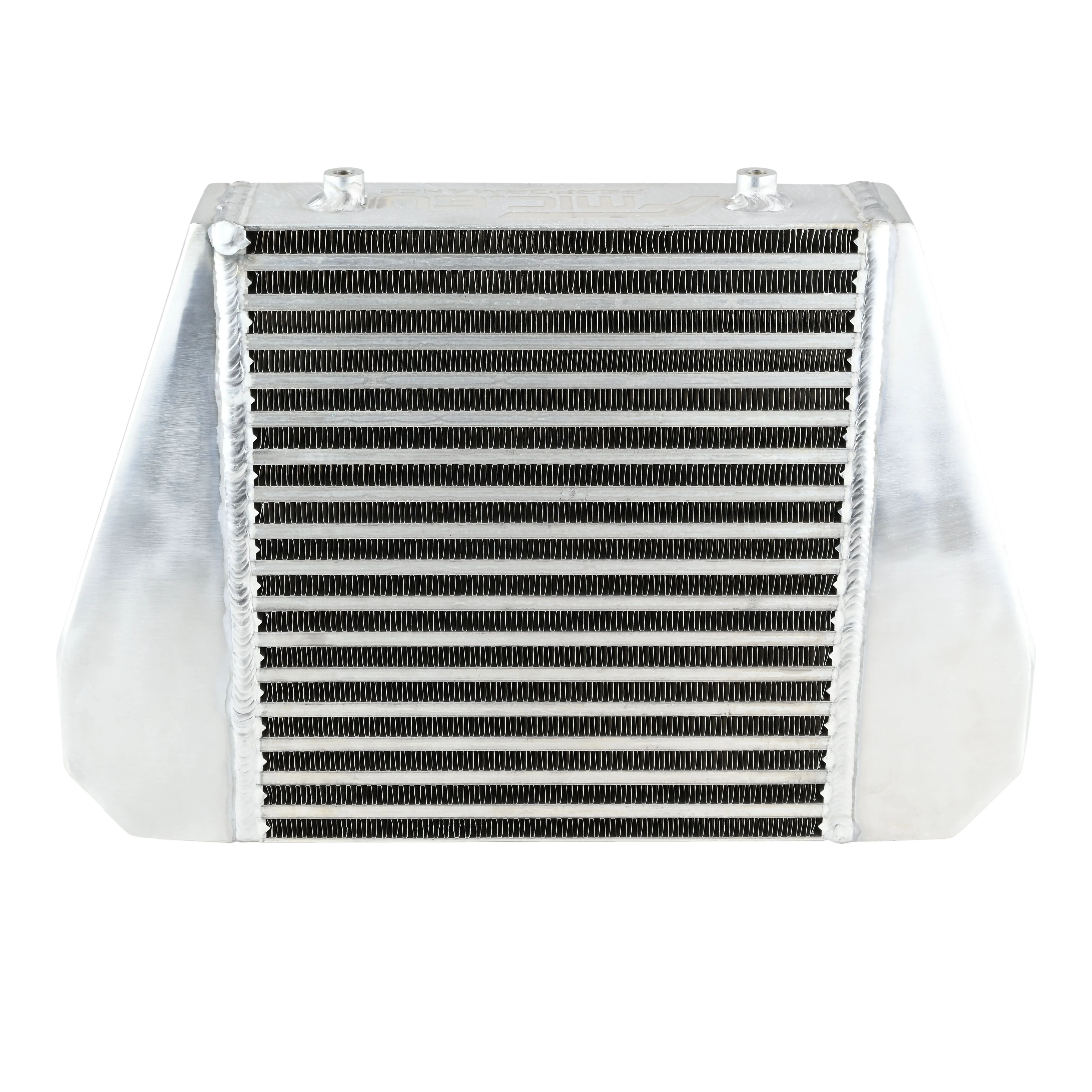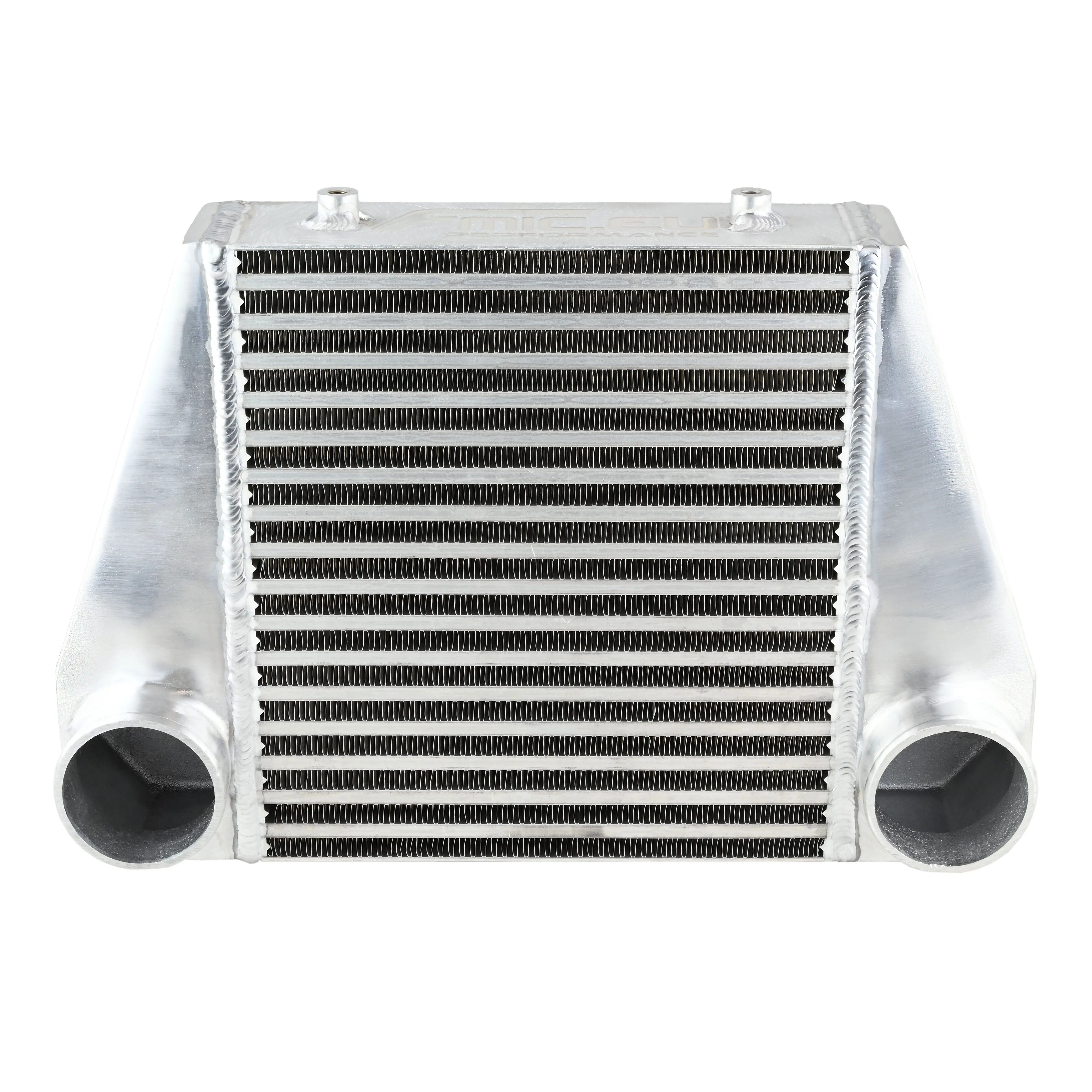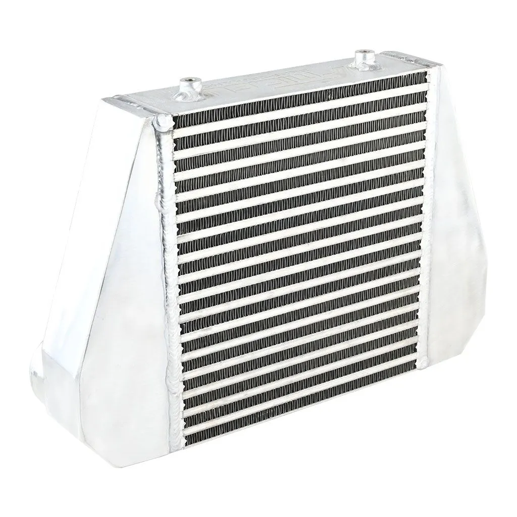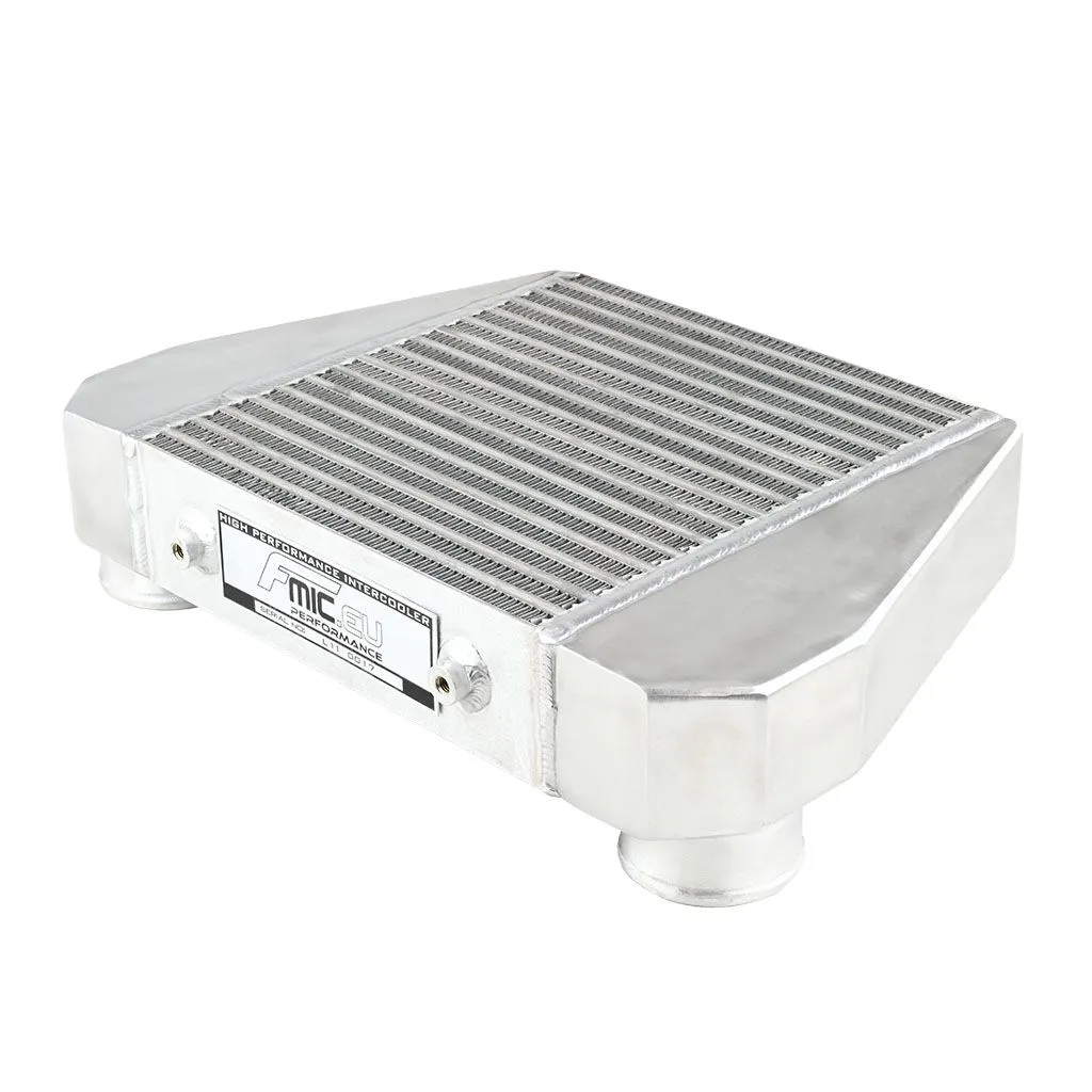 Intercooler o wymiarach rdzenia: 280x300x76mm, całkowite wymiary: 450x300x110mm, średnica wlot/wylot 76mm, wydajność do mocy 500KM. Posiada bardzo wydajny, zarówno wewnętrzny, jak i zewnętrzny rdzeń drugiego typu, grube ścianki wykonane z najwyższej jakości polerowanego aluminium, co gwarantuje ogromną wytrzymałość, świetne chłodzenie, a także doskonałe przepływy powietrza (w przeciwieństwie do intercoolerów z samochodów dostawczych nie "zapychają" dolotu). Znakomicie zastępują seryjne intercoolery zwiększając osiągi samochodu. Nasze intercoolery jako jedyne były testowane ciśnieniem ponad 10 barów - nawet tak duże ciśnienie nie robi na nich żadnego wrażenia. Intercoolery posiadają wytłoczone logo FMIC.EU, które wyróżnia je z tłumu "podobnych" chłodnic dostępnych na rynku. Kupując nasz cooler masz gwarancję otrzymania produktu o najwyższej jakości wykonania ze świetnymi przepływami, charakteryzujący się znakomitym chłodzeniem! W przeciwieństwie do podobnych intercoolerów sprzedawanych w internecie, wszystkie sprzedawane przez nas chłodnice posiadają nowy, dużo wydajniejszy rdzeń drugiego typu! Stary rdzeń widoczny po prawej stronie miał bardzo rzadlko ułożone żeberka, do tego tylko w jednym rzędzie (patrząc przez wlot było widać wylot), co skutkowało słabym chłodzeniem - przelatujące nim powietrze nie oddawało całego ciepła. Za odprowadzenie ciepła odpowiedzialny jest zupełnie nowy, zewnętrzny, złożony z dwóch warstw rdzeń. Jego wewnętrzna część posiada cienkie, dodatkowo nacinane lamelki, które dzięki swojej przewiewności znakomicie oddają ciepło. Ich odpowiednie ułożenie oraz widoczne na zdjęciu nacięcia gwarantują optymalną wentylację (ogromna poprawa chłodzenia w porównaniu do zewnętrznego, montowanego w tańszych coolerach, gęstego rdzenia), natomiast zewnętrzna, mocna warstwa lamelek chroni go przed uszkodzeniami mechanicznymi.Intercooler - FMIC.EU