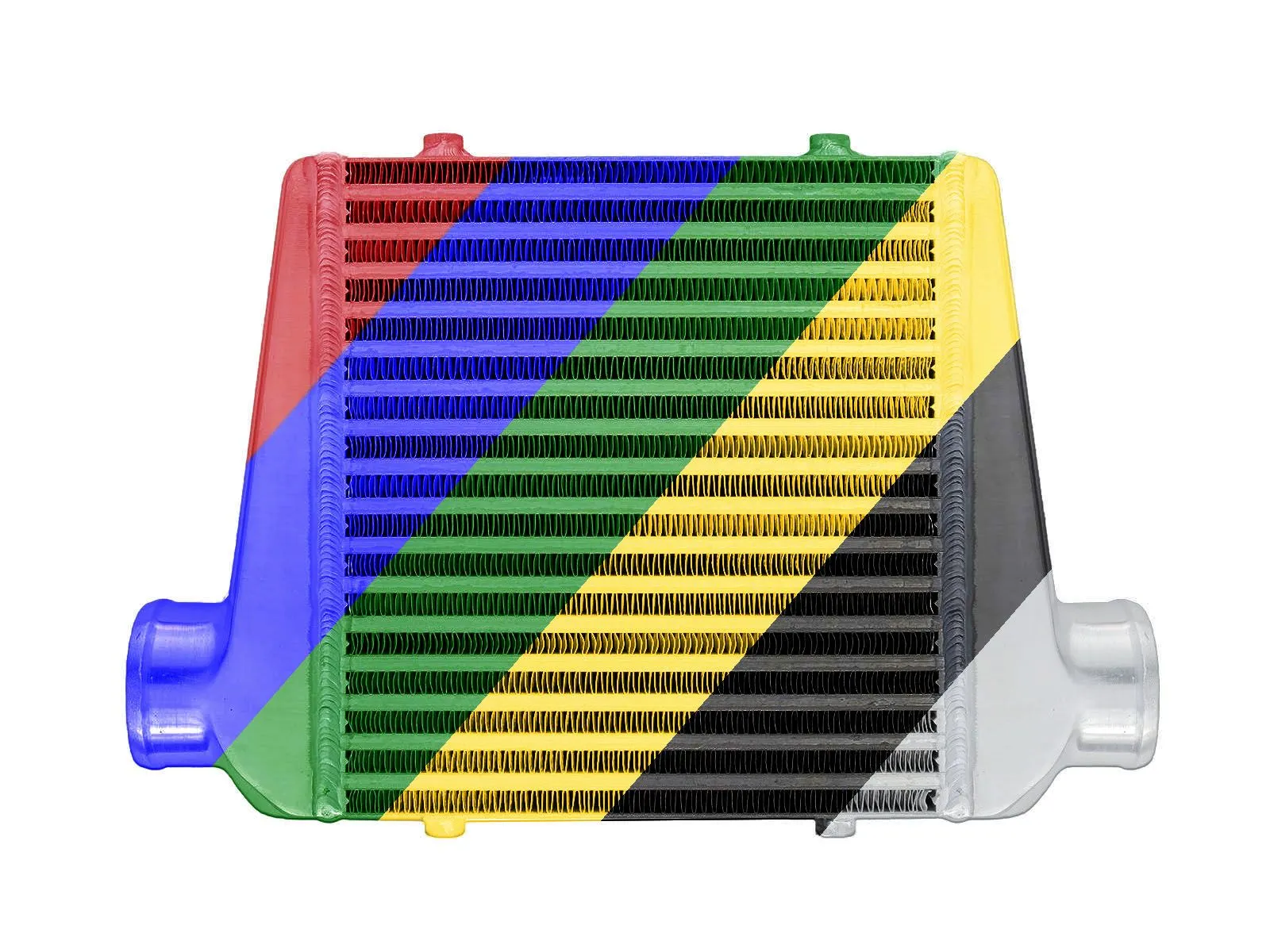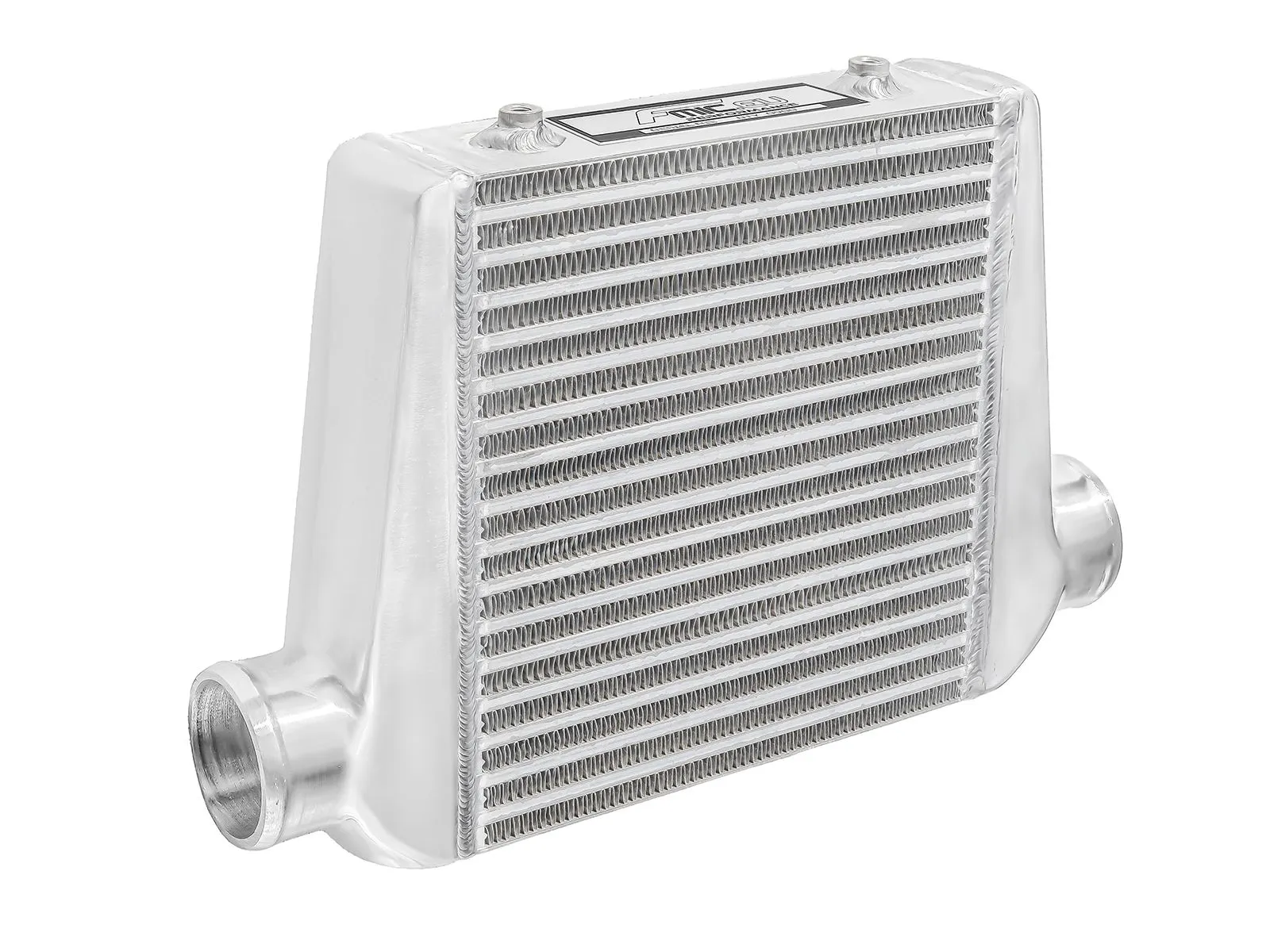 Intercooler o wymiarach rdzenia: 280x300x76mm, całkowite wymiary: 460x300x76mm, średnica wlot/wylot 76mm, wydajność do mocy 500KM. Posiada bardzo wydajny, zarówno wewnętrzny, jak i zewnętrzny rdzeń drugiego typu, grube ścianki wykonane z najwyższej jakości polerowanego aluminium, co gwarantuje ogromną wytrzymałość, świetne chłodzenie, a także doskonałe przepływy powietrza (w przeciwieństwie do intercoolerów z samochodów dostawczych nie "zapychają" dolotu). Znakomicie zastępują seryjne intercoolery zwiększając osiągi samochodu. Nasze intercoolery jako jedyne były testowane ciśnieniem ponad 10 barów - nawet tak duże ciśnienie nie robi na nich żadnego wrażenia. Intercoolery posiadają wytłoczone logo FMIC.EU, które wyróżnia je z tłumu "podobnych" chłodnic dostępnych na rynku. Kupując nasz cooler masz gwarancję otrzymania produktu o najwyższej jakości wykonania ze świetnymi przepływami, charakteryzujący się znakomitym chłodzeniem! W przeciwieństwie do podobnych intercoolerów sprzedawanych w internecie, wszystkie sprzedawane przez nas chłodnice posiadają nowy, dużo wydajniejszy rdzeń drugiego typu! Stary rdzeń widoczny po prawej stronie miał bardzo rzadlko ułożone żeberka, do tego tylko w jednym rzędzie (patrząc przez wlot było widać wylot), co skutkowało słabym chłodzeniem - przelatujące nim powietrze nie oddawało całego ciepła. Za odprowadzenie ciepła odpowiedzialny jest zupełnie nowy, zewnętrzny, złożony z dwóch warstw rdzeń. Jego wewnętrzna część posiada cienkie, dodatkowo nacinane lamelki, które dzięki swojej przewiewności znakomicie oddają ciepło. Ich odpowiednie ułożenie oraz widoczne na zdjęciu nacięcia gwarantują optymalną wentylację (ogromna poprawa chłodzenia w porównaniu do zewnętrznego, montowanego w tańszych coolerach, gęstego rdzenia), natomiast zewnętrzna, mocna warstwa lamelek chroni go przed uszkodzeniami mechanicznymi.Intercooler - Kolor - w wiadomości napisz, jaki ma być kolor.