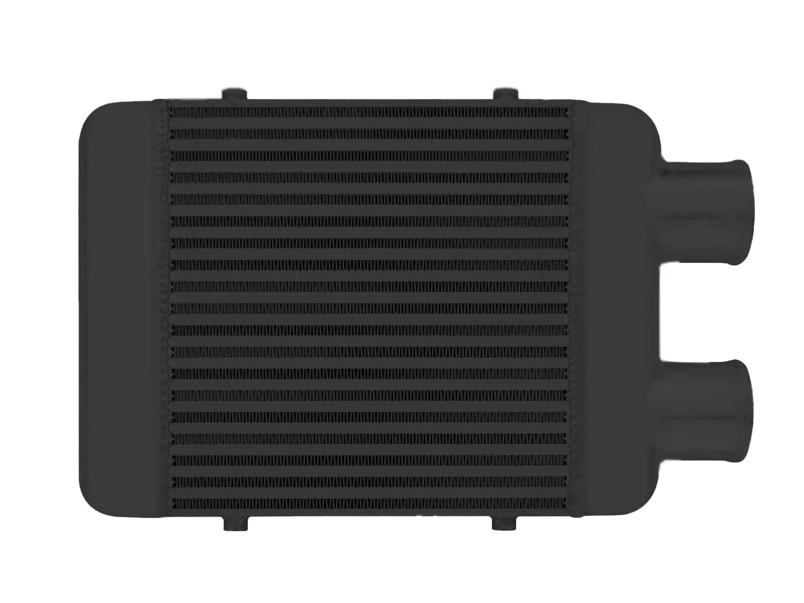 Intercooler o wymiarach rdzenia: 300x300x76mm, wymiar całkowity: 420x300x76mm, przespawany wlot i wylot na jedną stronę o średnicach 76mm, wystarczający do mocy 350KM. Posiada bardzo wydajny rdzeń, grube ścianki wykonane z najwyższej jakości polerowanego aluminium, co gwarantuje ogromną wytrzymałość, świetne chłodzenie, a także doskonałe przepływy powietrza (w przeciwieństwie do intercoolerów z samochodów dostawczych nie "zapychają" dolotu). Znakomicie zastępują seryjne intercoolery zwiększając osiągi samochodu. Świetnie sprawdza się w samochodach mających orurowanie idące z turbo i do kolektora po jednej stronie samochodu. Nasze intercoolery były testowane do 5 barów - nawet tak duże ciśnienie nie robi na nich żadnego wrażenia. Wszystkie sprzedawane na naszych aukcjach intercoolery posiadają nowy, dużo wydajniejszy rdzeń drugiego typu! Stary rdzeń widoczny po prawej stronie miał bardzo rzadko ułożone żeberka, do tego tylko w jednym rzędzie (patrząc przez wlot było widać wylot), co skutkowało słabym chłodzeniem - przelatujące nim powietrze nie oddawało całego ciepła. Oferowane na naszych aukcjach intercoolery posiadają dużo gęstszy, naprzemiennie ułożony radiator, co gwarantuje ogromną poprawę chodzenia! Intercooler jednostronny jest robiony na indywidualne zamówienie. Czas oczekiwania od 1 do 2 dni roboczych!!!