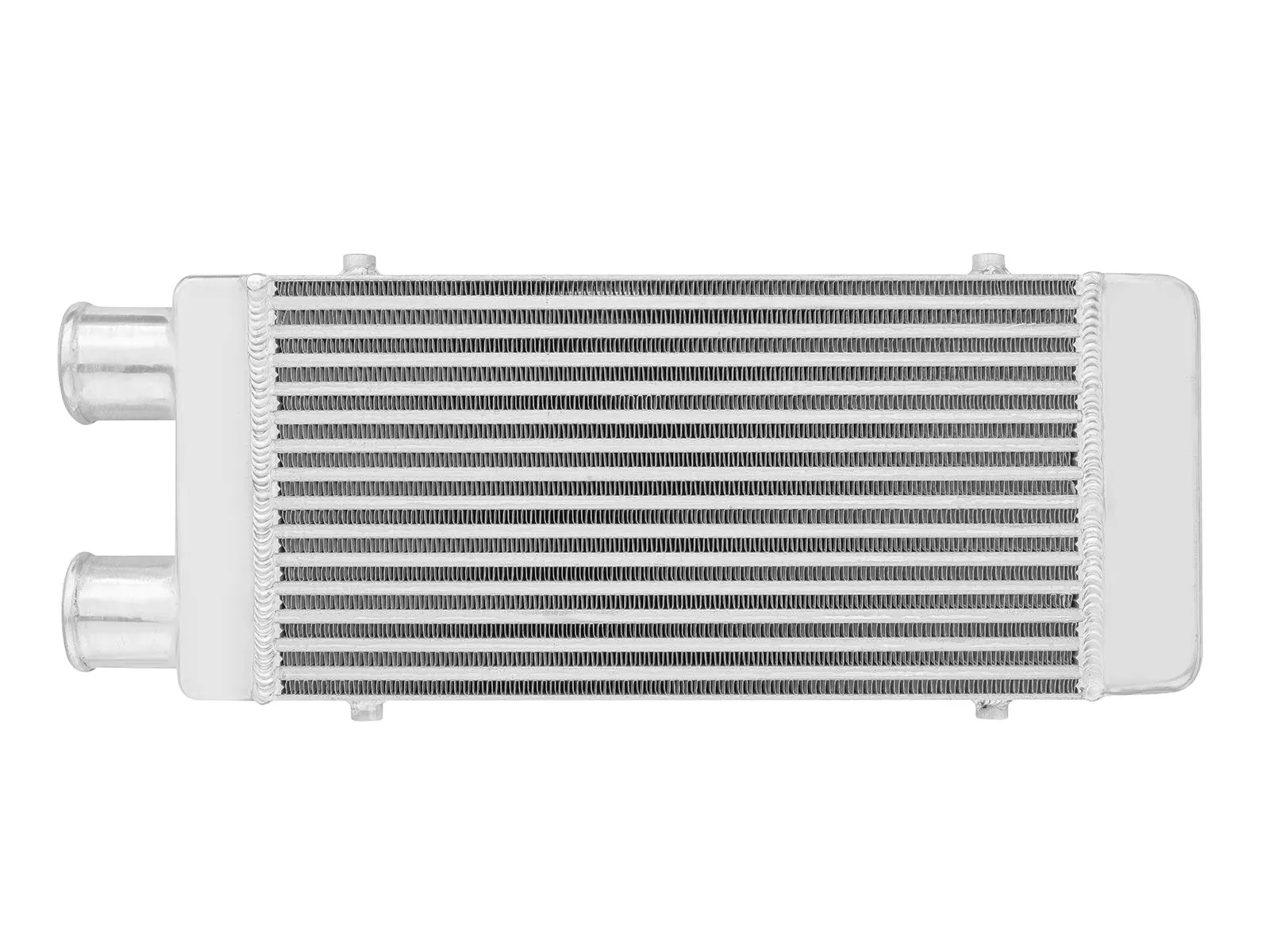 Intercooler o wymiarach rdzenia: 450x180x65mm, wymiary całkowite: 560x180x65mm, przespawane wlot i wylot na jedną stronę o średnicy 57mm, wystarczający do mocy 200KM. Posiada bardzo wydajny rdzeń, grube ścianki wykonane z najwyższej jakości polerowanego aluminium, co gwarantuje ogromną wytrzymałość, świetne chłodzenie, a także doskonałe przepływy powietrza (w przeciwieństwie do intercoolerów z samochodów dostawczych nie "zapychają" dolotu). Znakomicie zastępują seryjne intercoolery zwiększając osiągi samochodu. Świetnie sprawdza się w samochodach mających orurowanie idące z turbo i do kolektora po jednej stronie samochodu. Nasze intercoolery były testowane do 5 barów - nawet tak duże ciśnienie nie robi na nich żadnego wrażenia. Wszystkie sprzedawane na naszych aukcjach intercoolery posiadają nowy, dużo wydajniejszy rdzeń drugiego typu! Stary rdzeń widoczny po prawej stronie miał bardzo rzadko ułożone żeberka, do tego tylko w jednym rzędzie (patrząc przez wlot było widać wylot), co skutkowało słabym chłodzeniem - przelatujące nim powietrze nie oddawało całego ciepła. Oferowane na naszych aukcjach intercoolery posiadają dużo gęstszy, naprzemiennie ułożony radiator, co gwarantuje ogromną poprawę chodzenia! Intercooler jednostronny jest robiony na indywidualne zamówienie. Czas oczekiwania od 1 do 2 dni roboczych!!! Intercooler - FMIC.EU